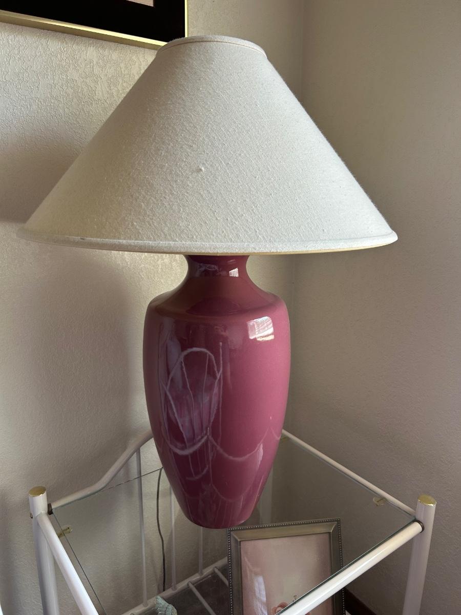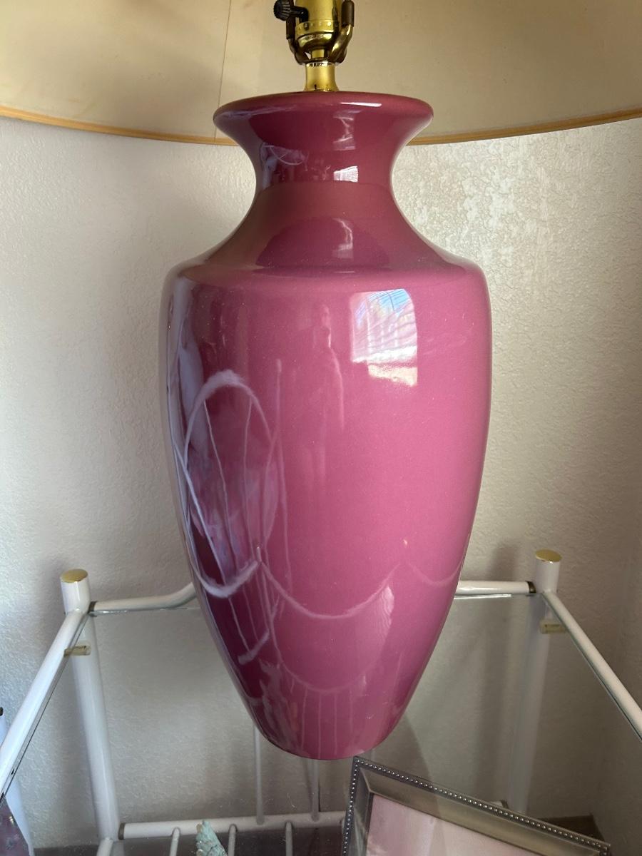 Large Dusty Rose Mauve Table Lamp with Shade. Works. In good condition.