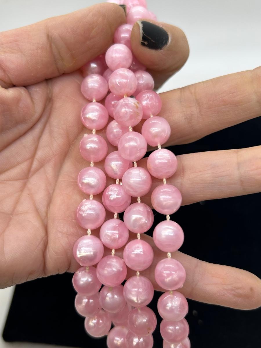 Vintage Retro Swirl Pink Plastic Bead Single Strand Necklace