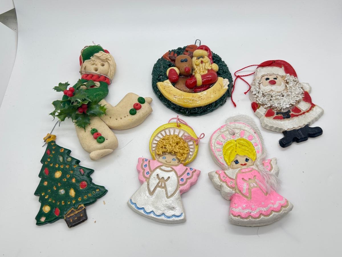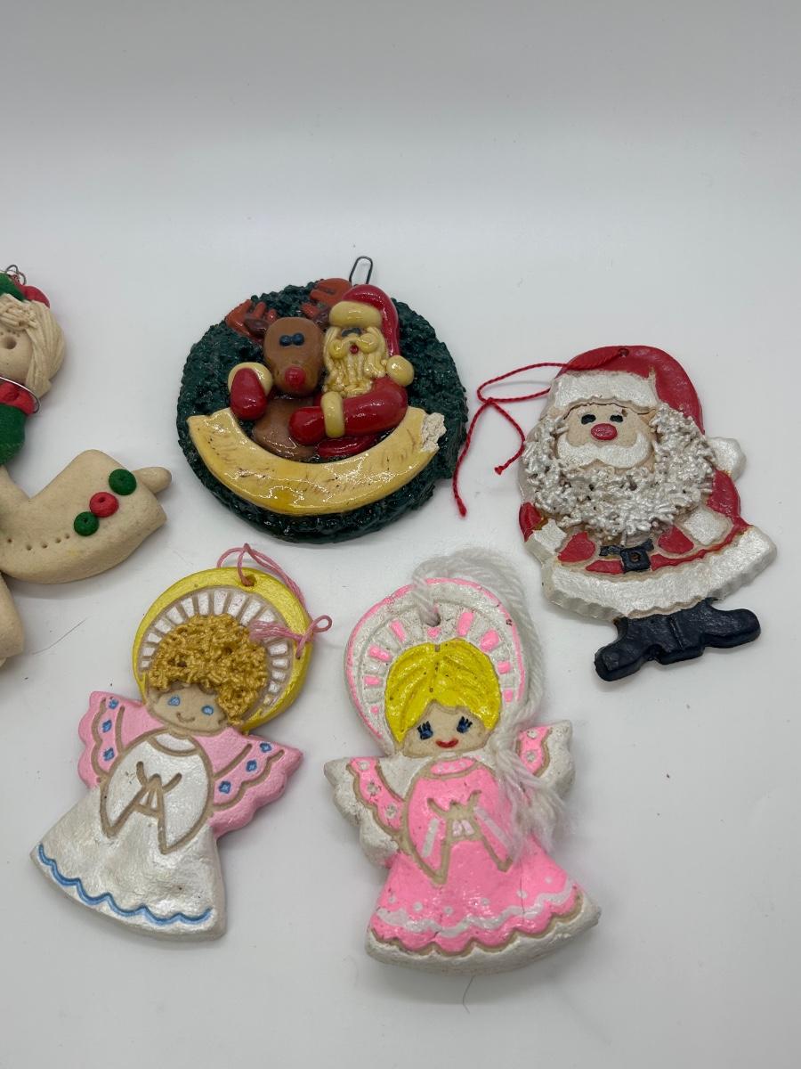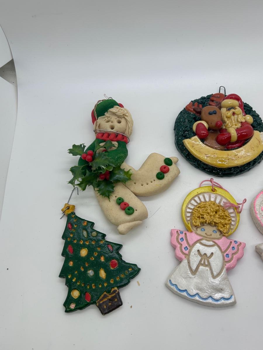 Vintage Handmade Soft Clay Tree Ornaments Cookie Cutter Angels, Christmas Tree, & More