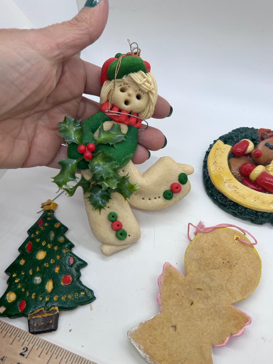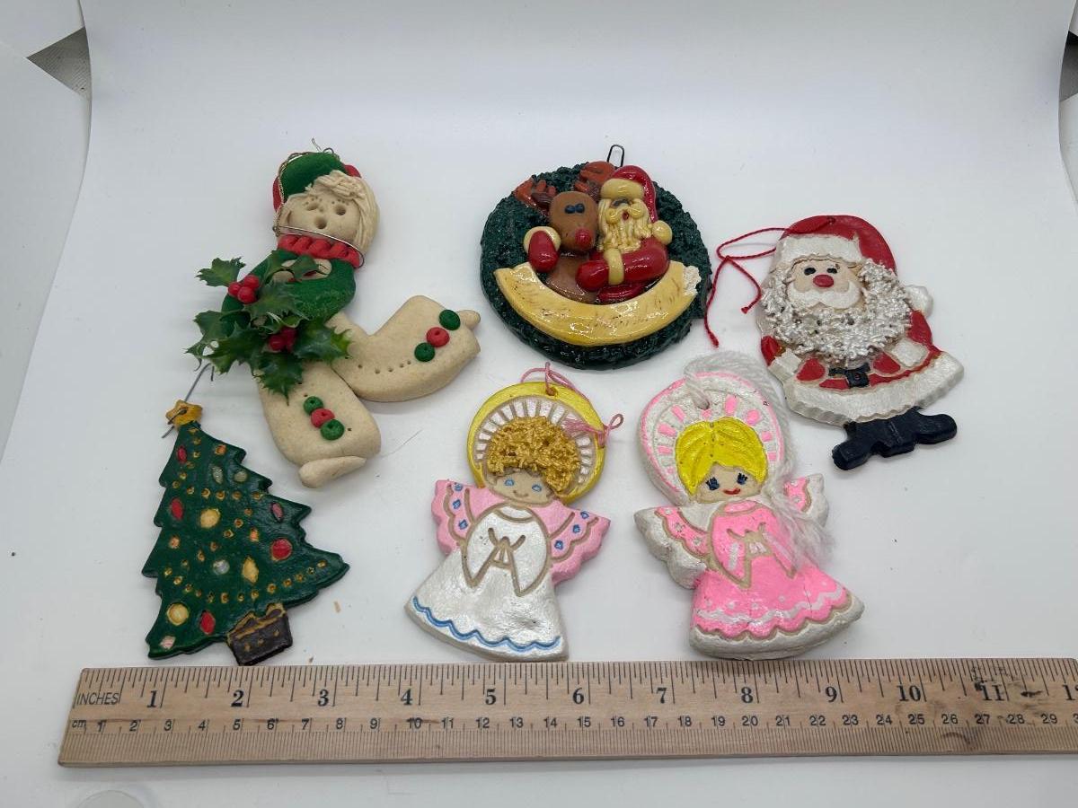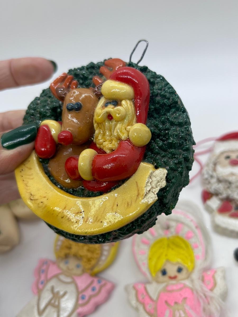 Vintage Handmade Soft Clay Tree Ornaments Cookie Cutter Angels, Christmas Tree, & More