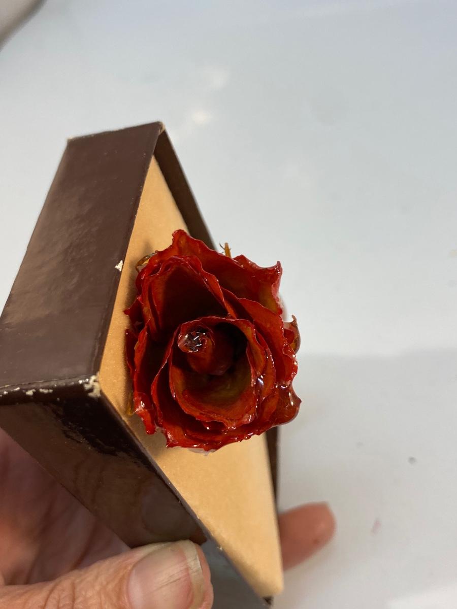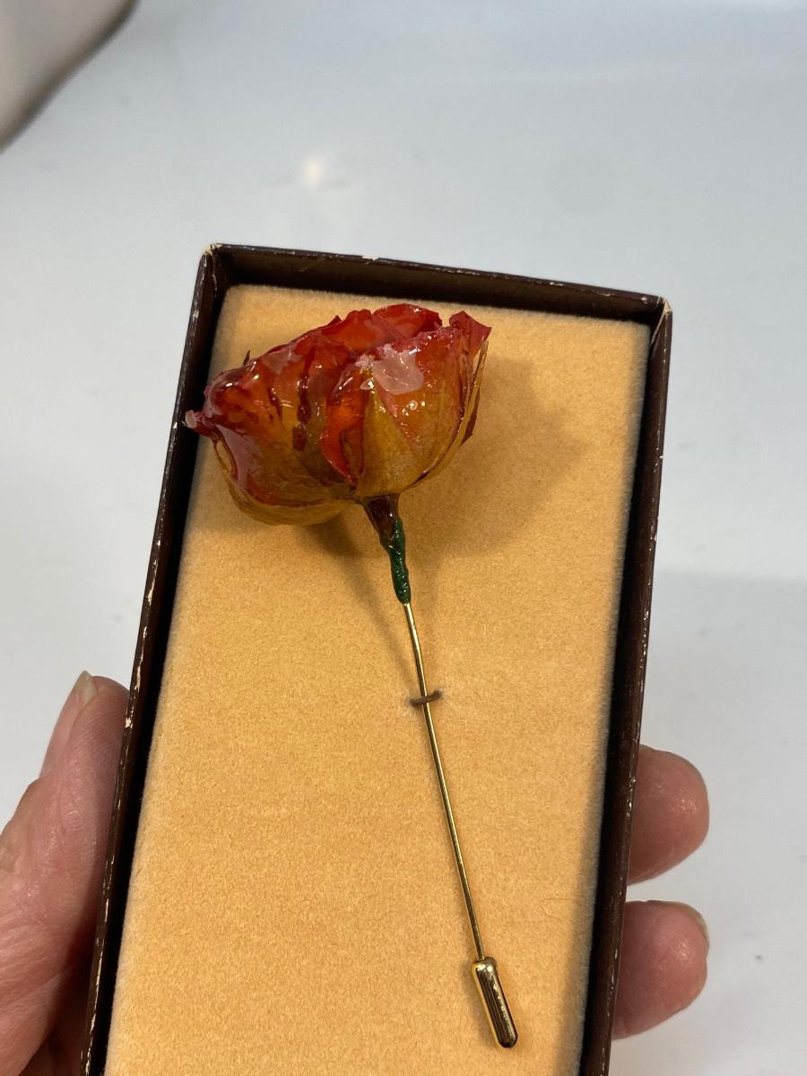 Vintage Real Flower Rose Bud Stick Pin Brooch. In original box. Flower has been clear coated to help keep preserved but is fragile.