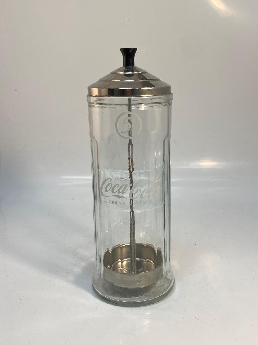 Vintage Style Coca-Cola Straw Holder Dispenser Canister Bottle Jar