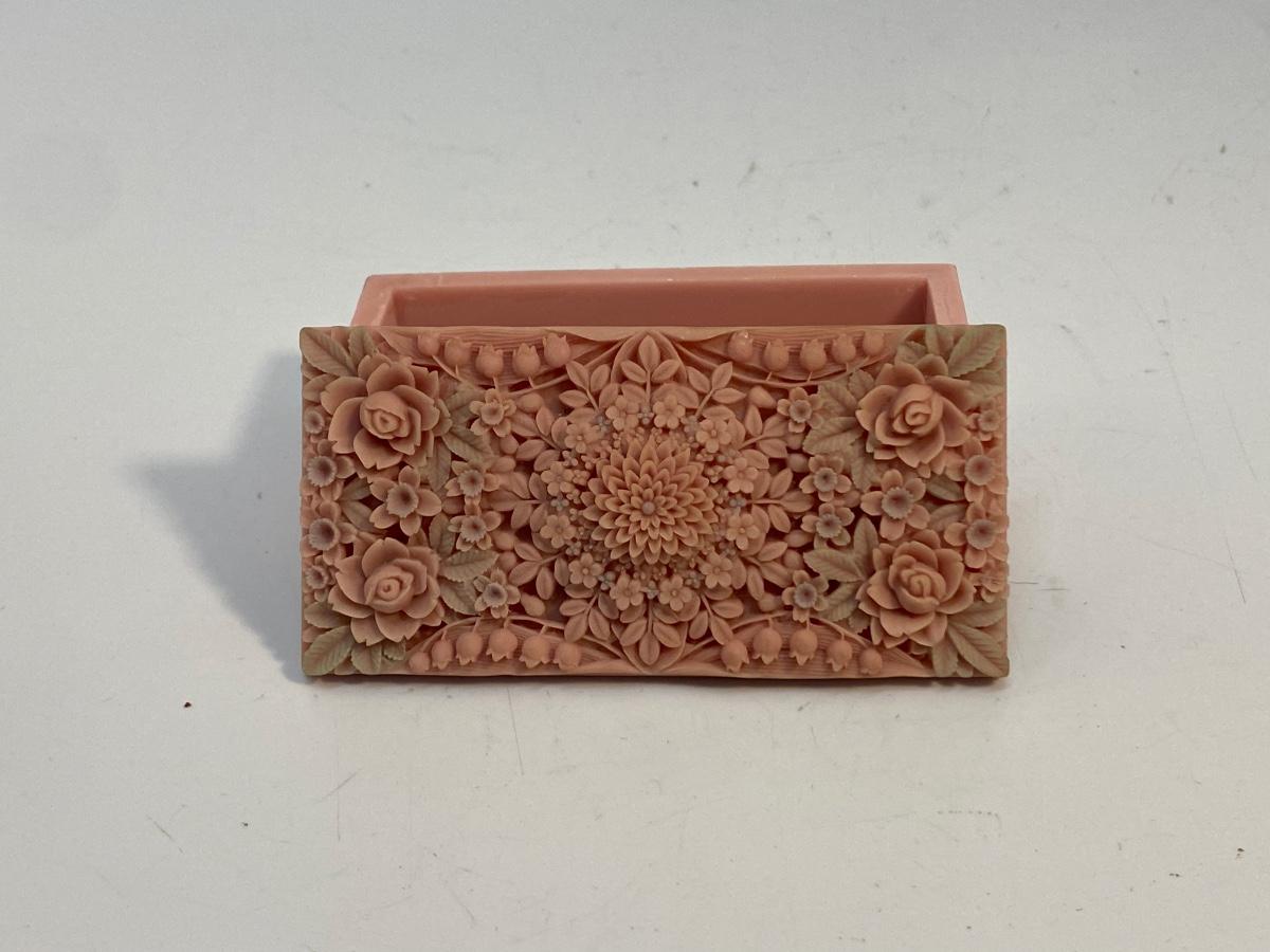 Small Pink Vintage Floral Carved Soapstone Trinket Box