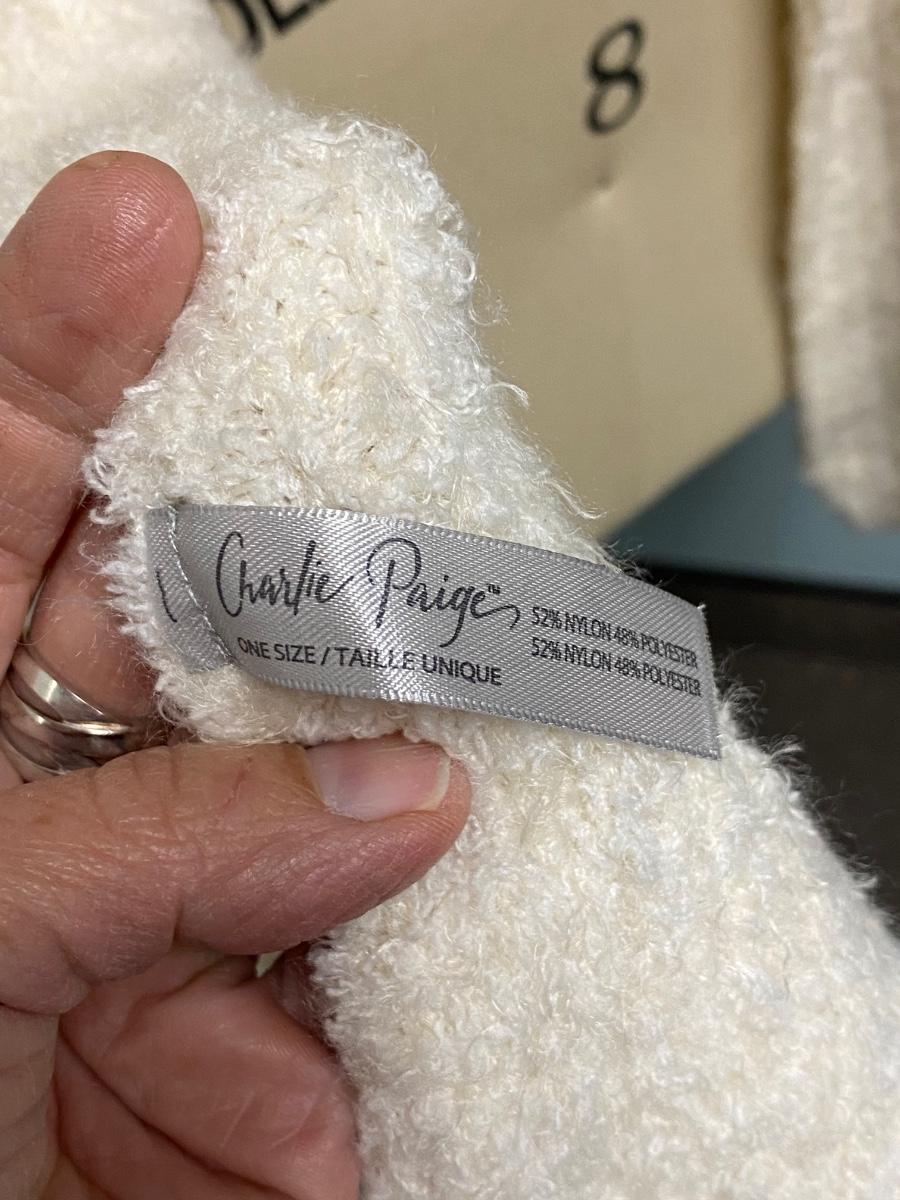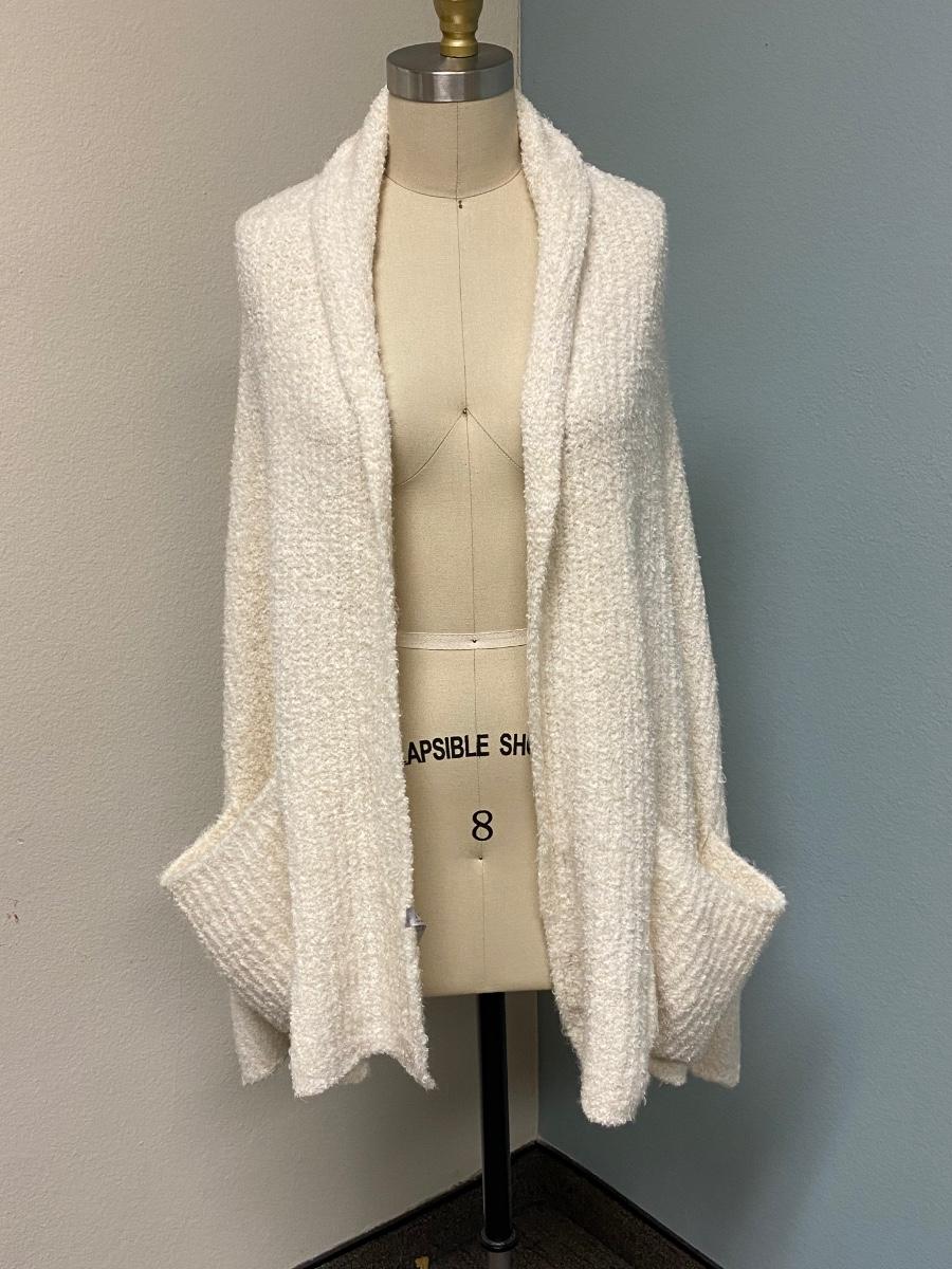 Charlie Paige Off White One Size Shawl Scarf Shoulder Wrap with Pockets. Nice textured yard weave. Good condition.