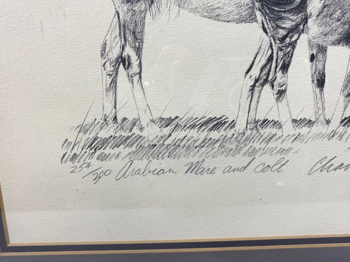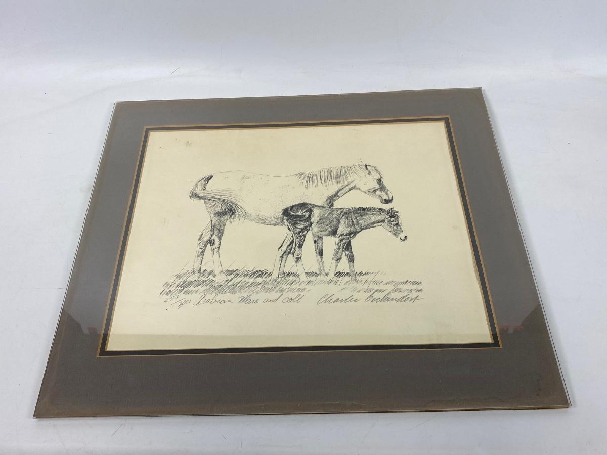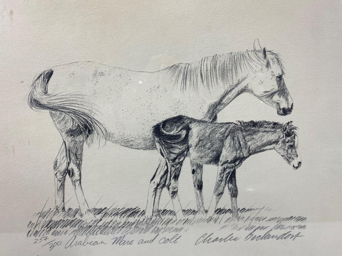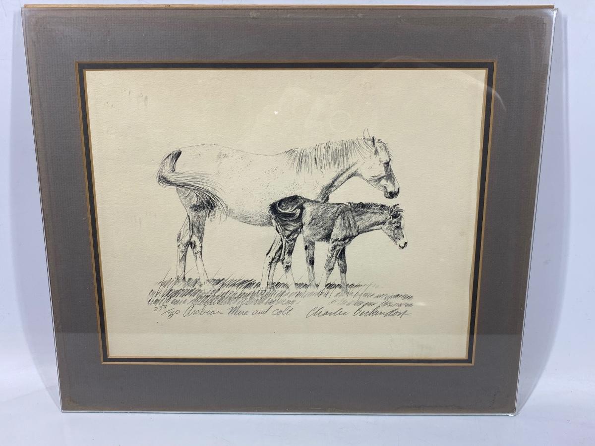 Artist Signed & Numbered Horse Equestrian Art Print Arabian Mare and Colt 254/300 Charles Beckendorf. Print in good condition. Was framed but frame was broken. Will ship without glass. Matted dimensions are roughly 15x18.