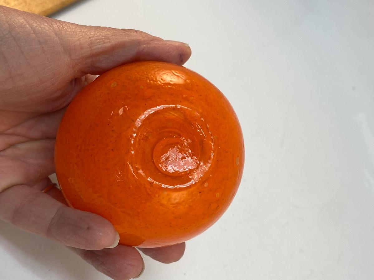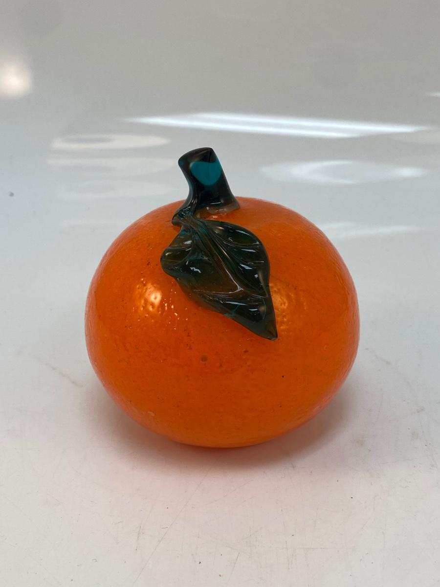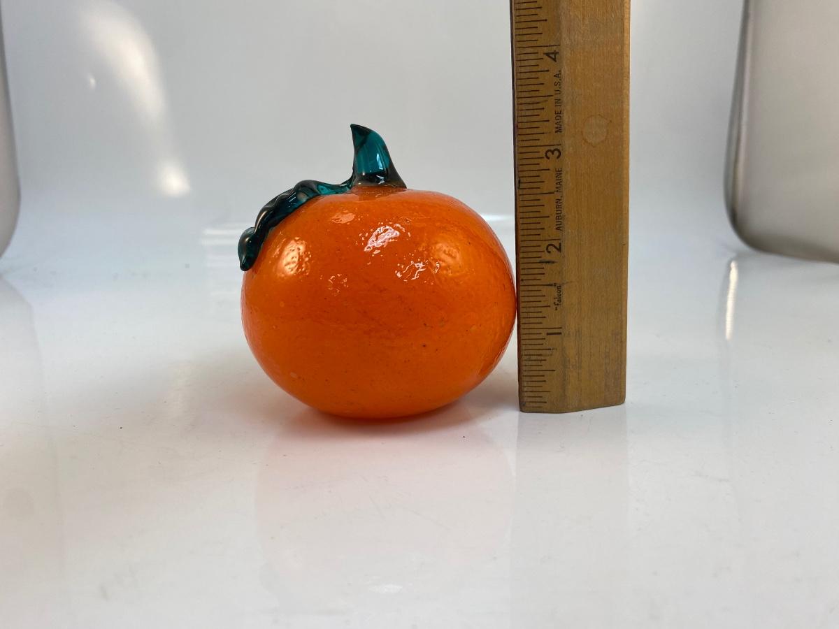 Blown Art Glass Mandarin Orange Citrus Fruit. Displays nice, great paperweight. About 3" size.