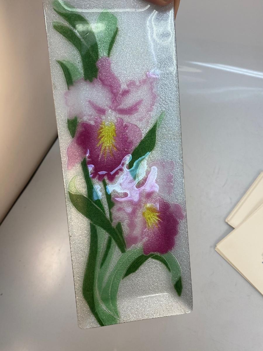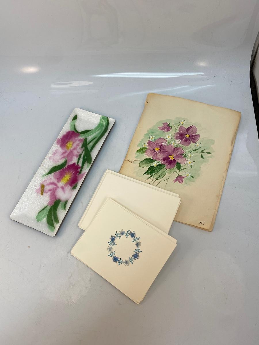 Vintage Embroidery Floss Floral Blank Inside Cards and Iris Flower Pen Trinket Tray