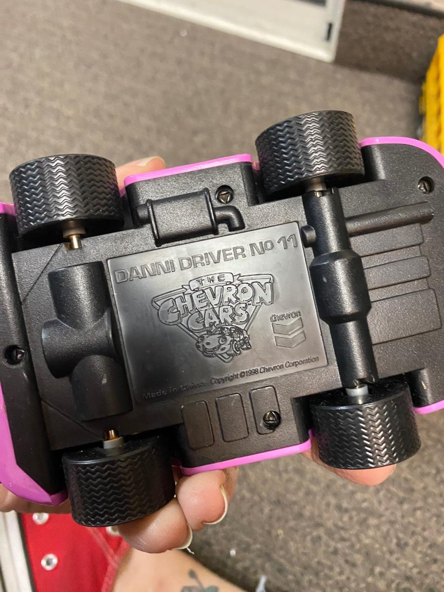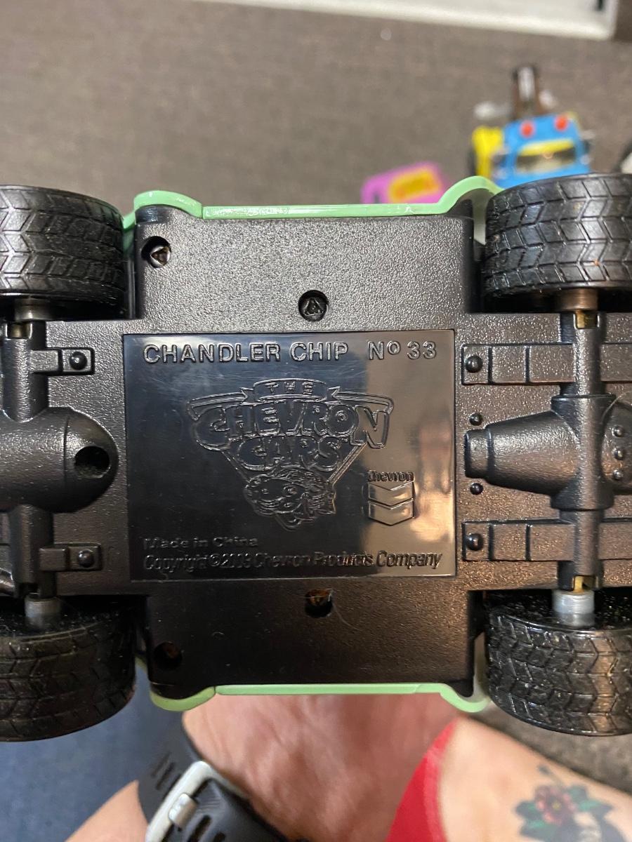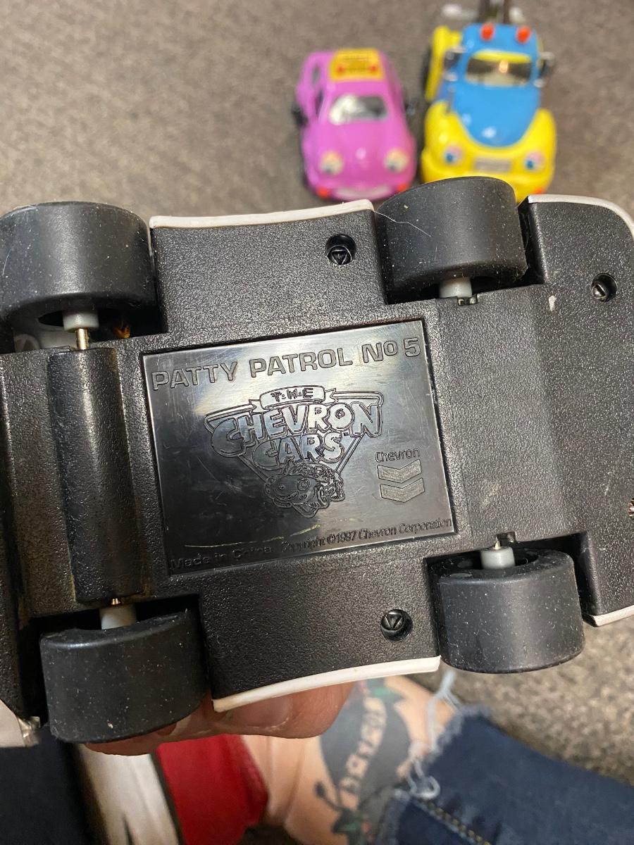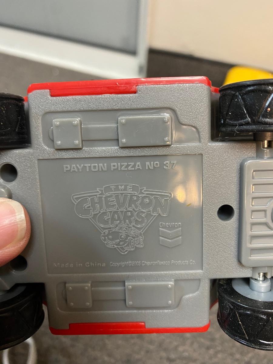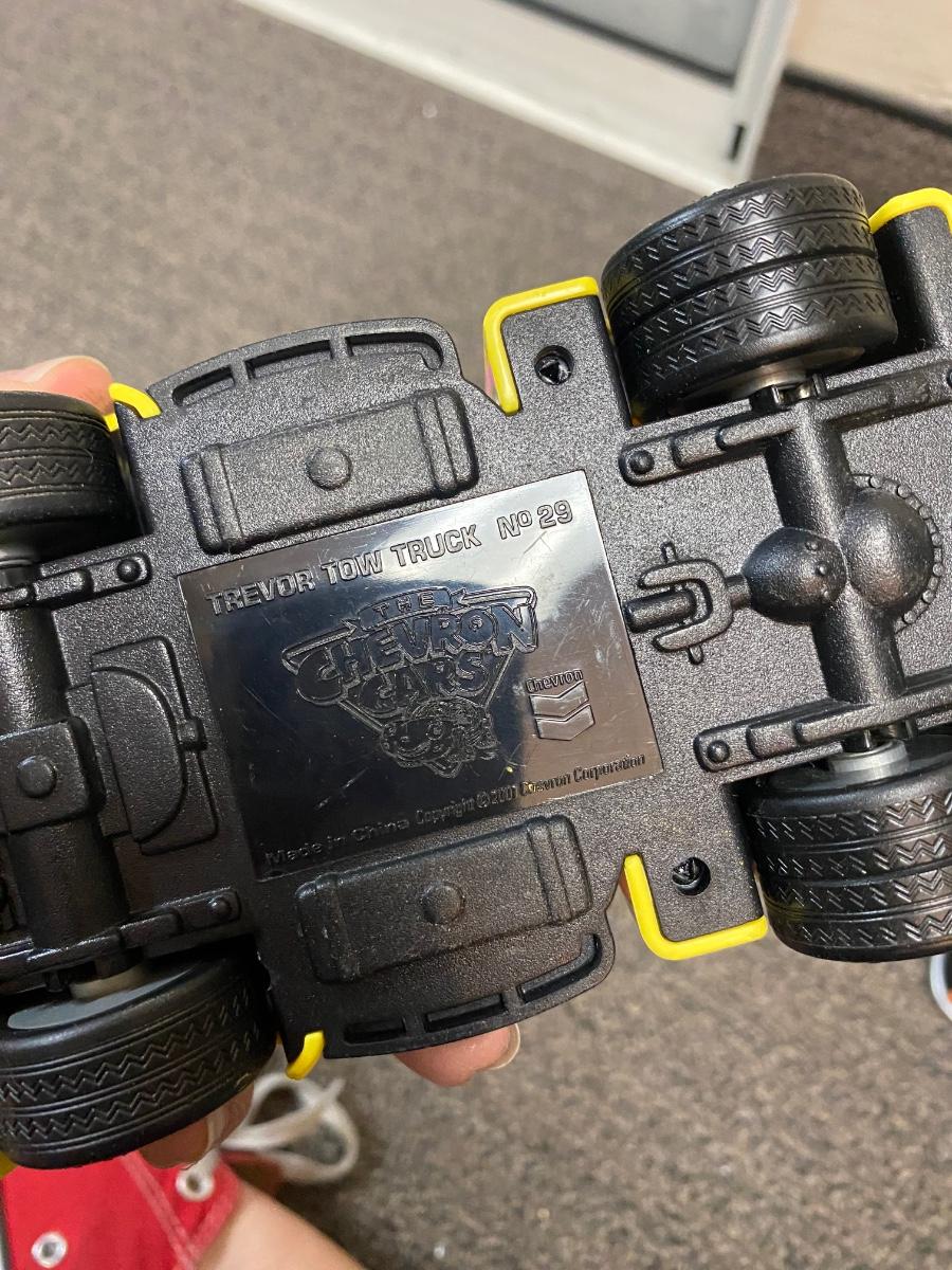 Lot of 6 Chevron Cars Police Tow Truck Ice Cream Pizza Delivery Moving Eyes. In good previously played with condition. Most of the cars have eyes that move when pushed along.