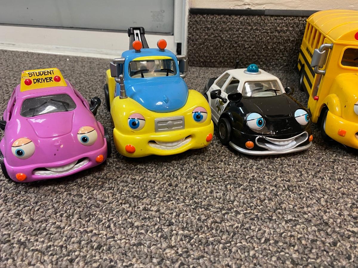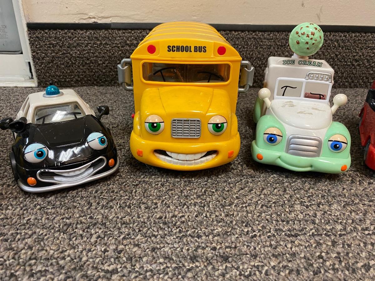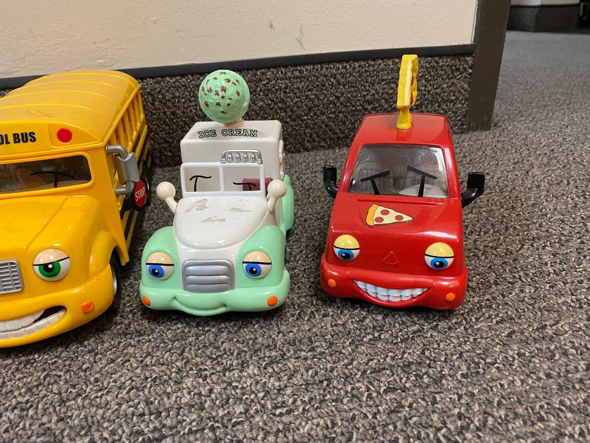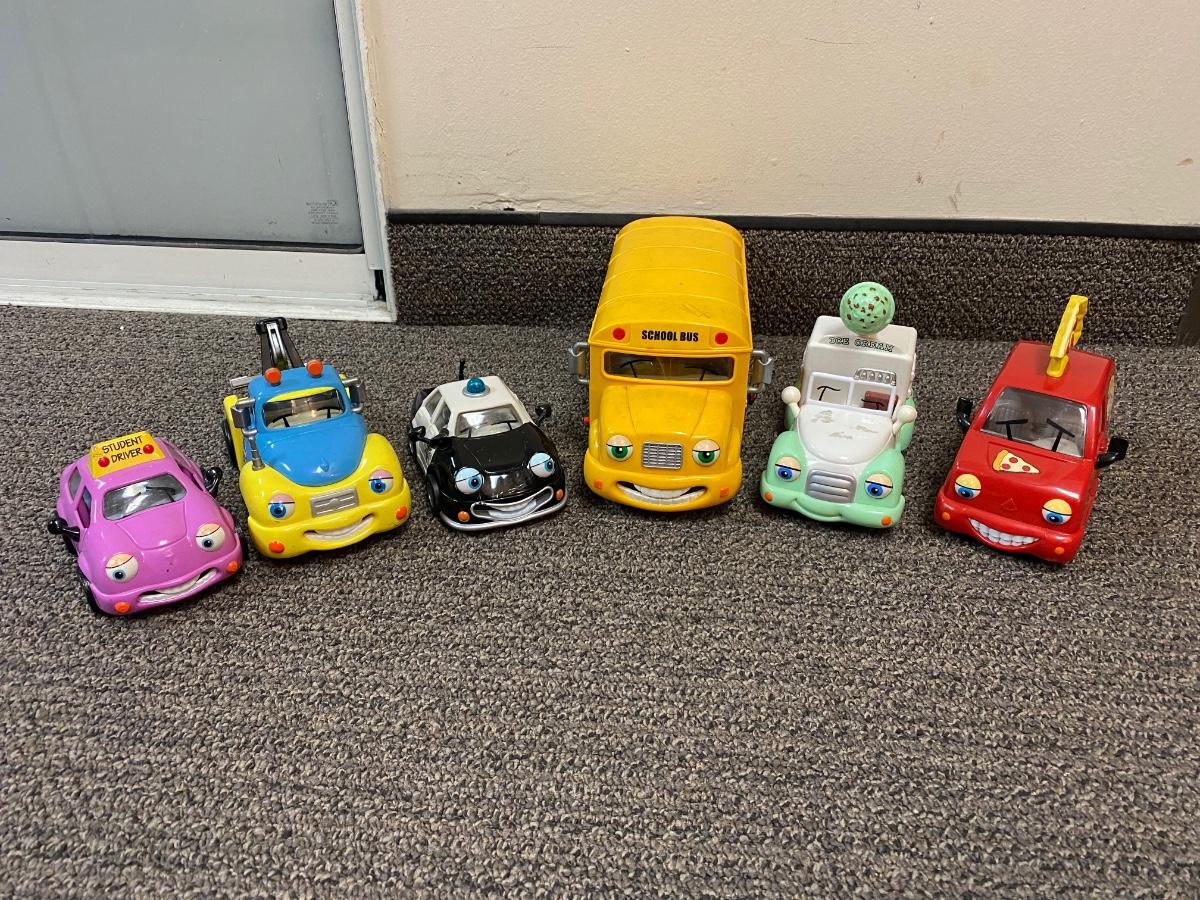 Lot of 6 Chevron Cars Police Tow Truck Ice Cream Pizza Delivery Moving Eyes