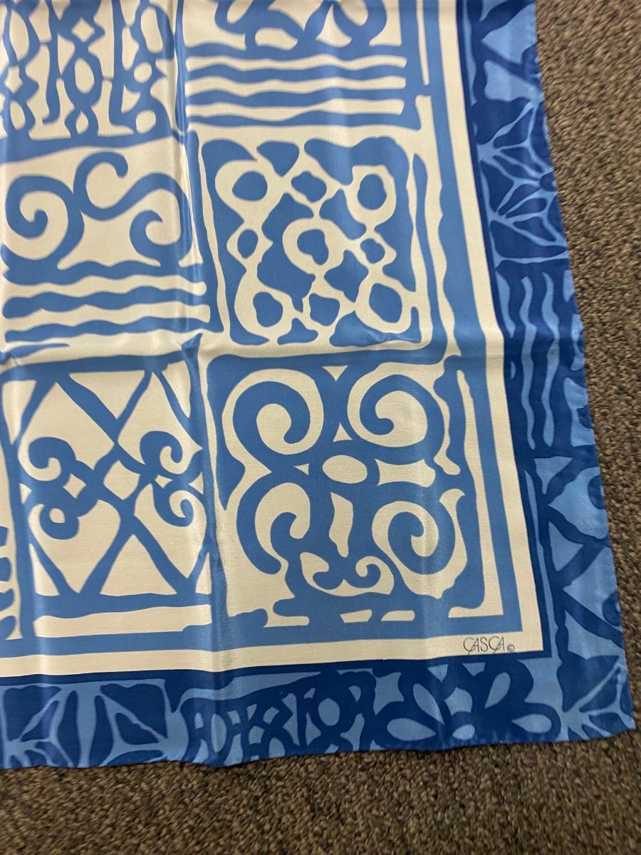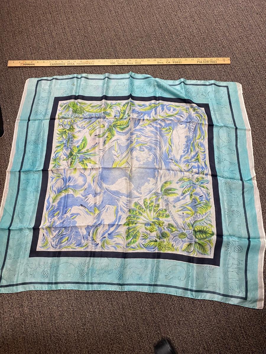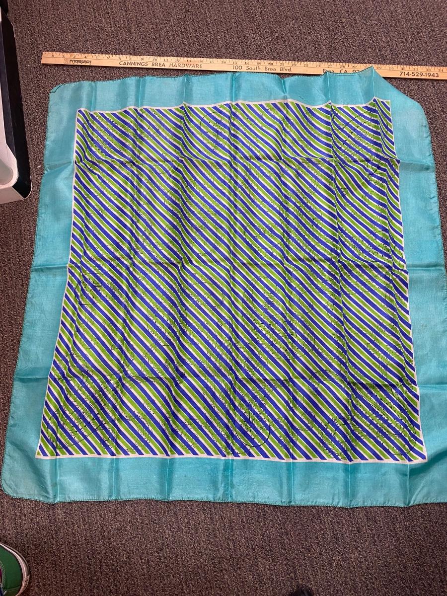 Lot of 4 Vintage Large Blue Green Silk Rayon Fashion Head Neck Scarves Scarf Casca Japan. In good vintage condition. Different patterns. All close to 36" size.