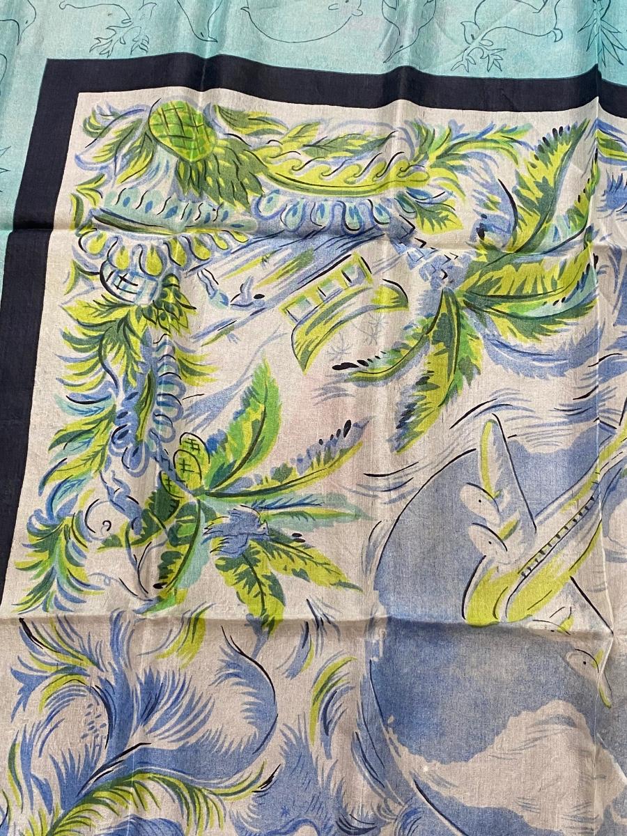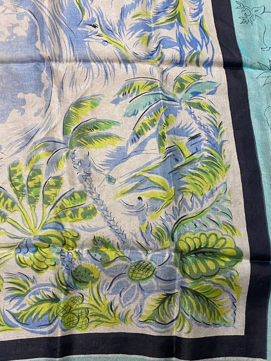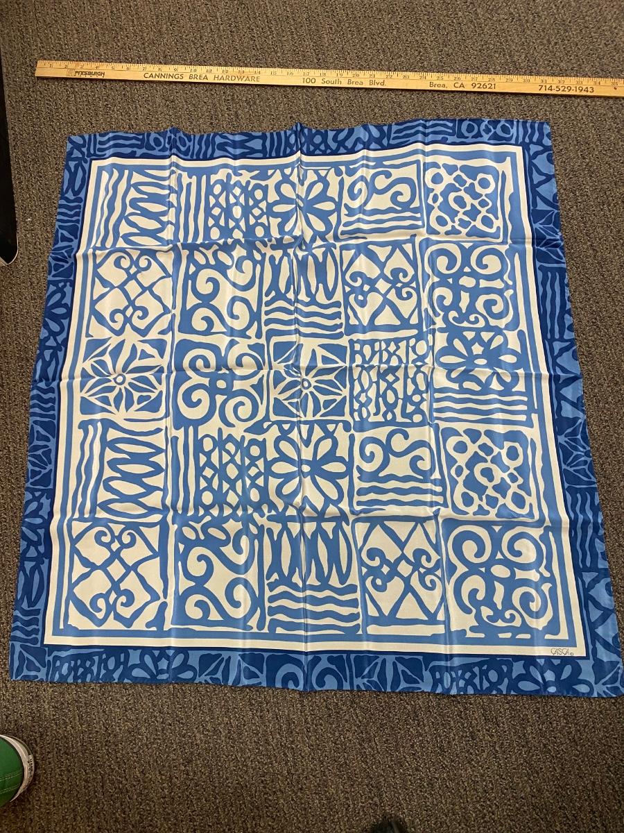 Lot of 4 Vintage Large Blue Green Silk Rayon Fashion Head Neck Scarves Scarf Casca Japan. In good vintage condition. Different patterns. All close to 36" size.