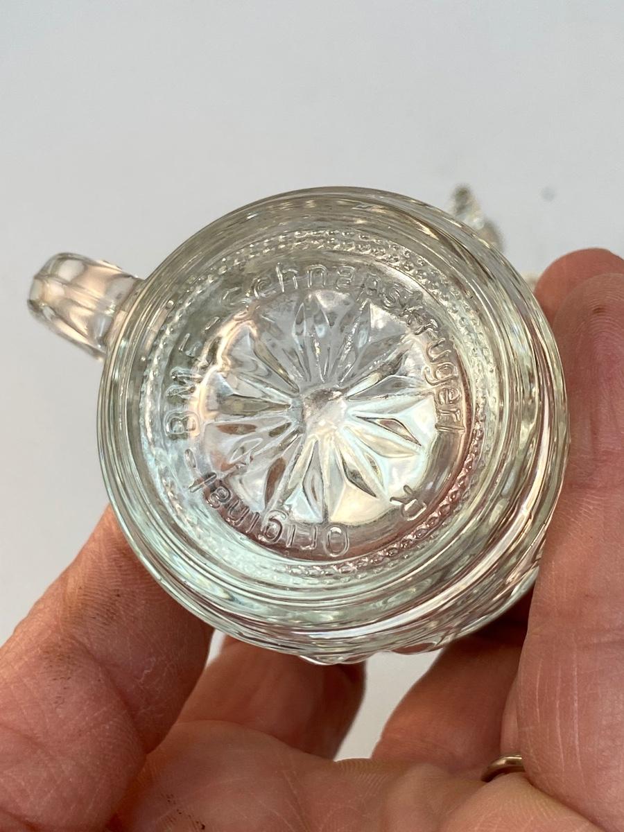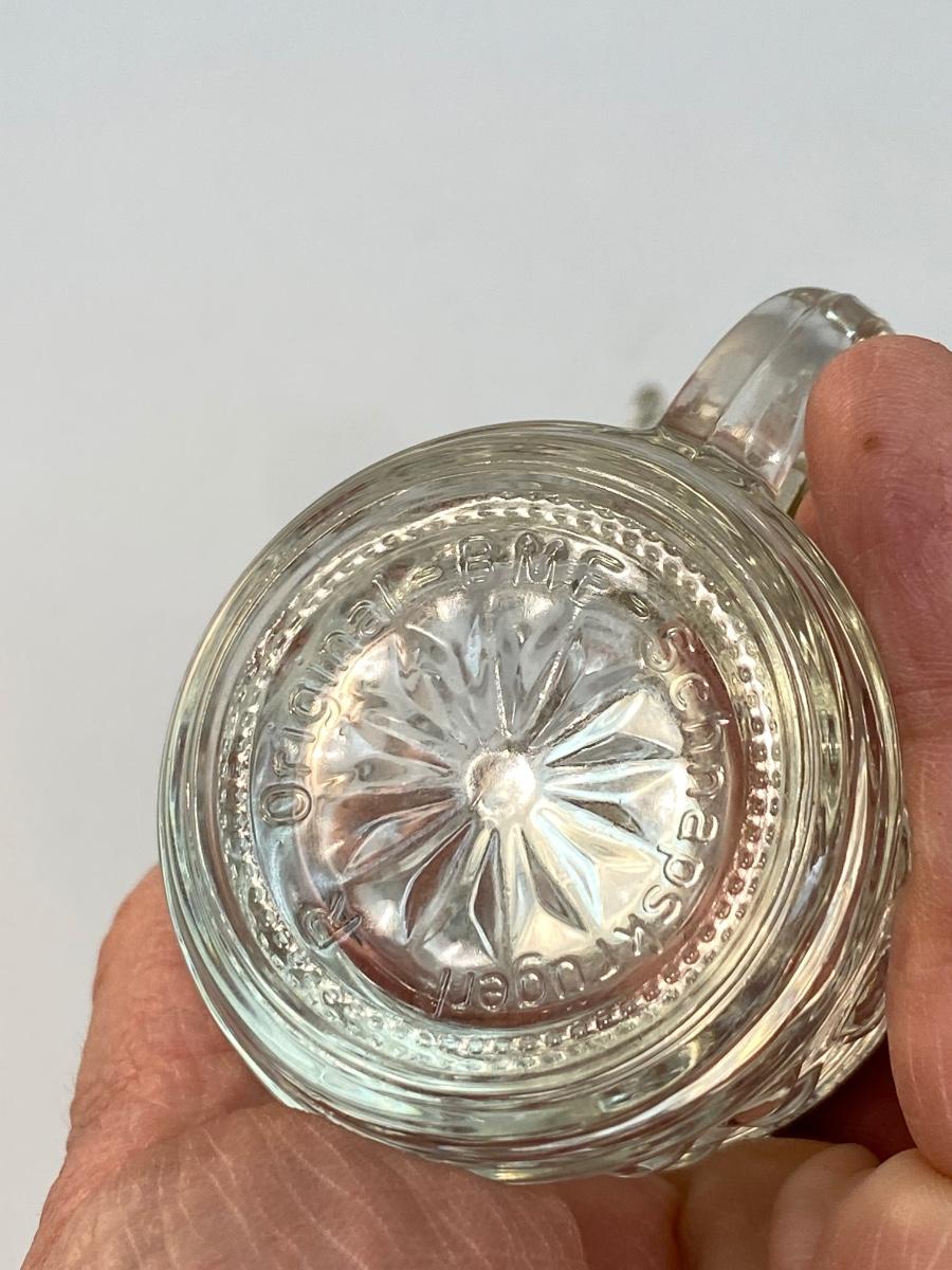 Pair of Miniature Lidded German Beer Steins Original BMF Bierseidel Hobnail Pressed Glass