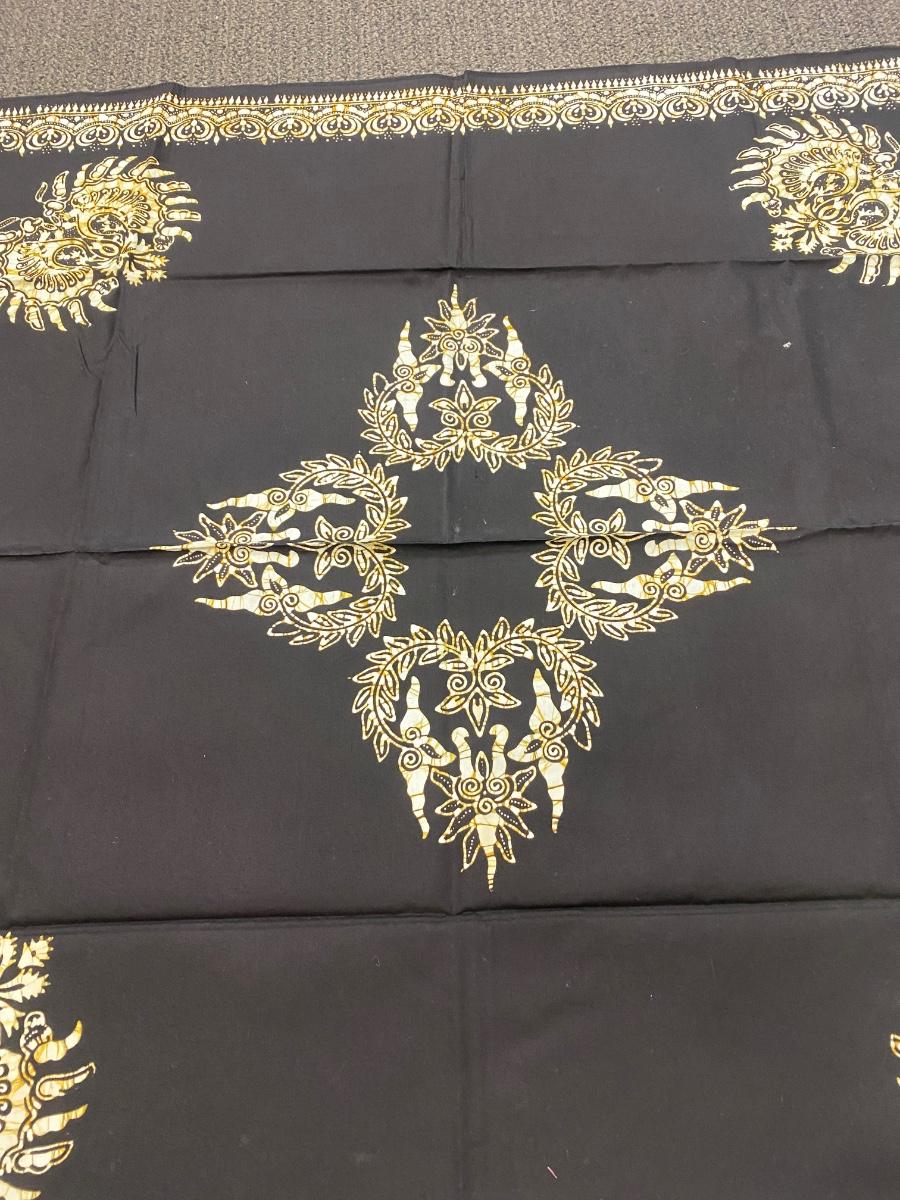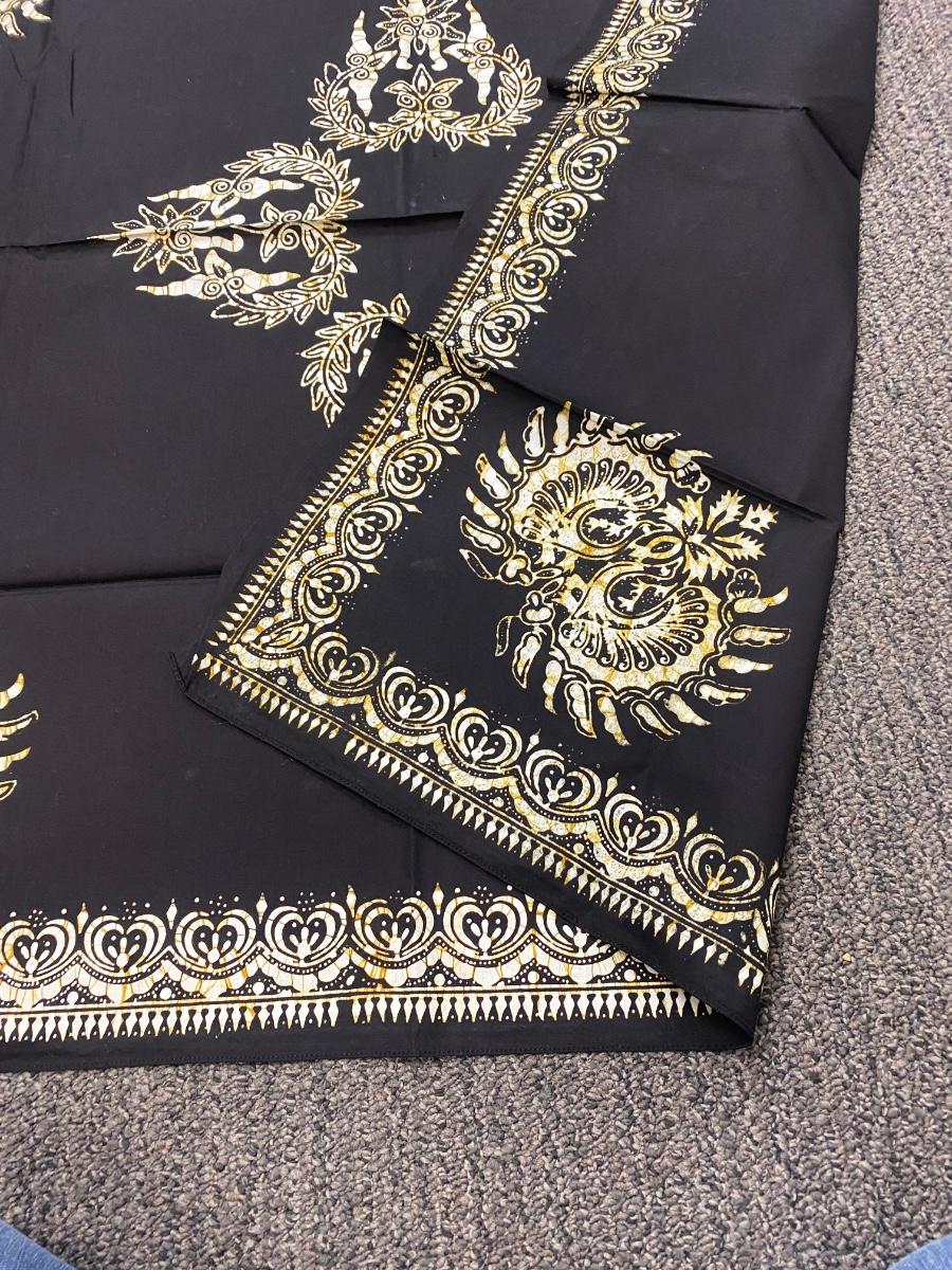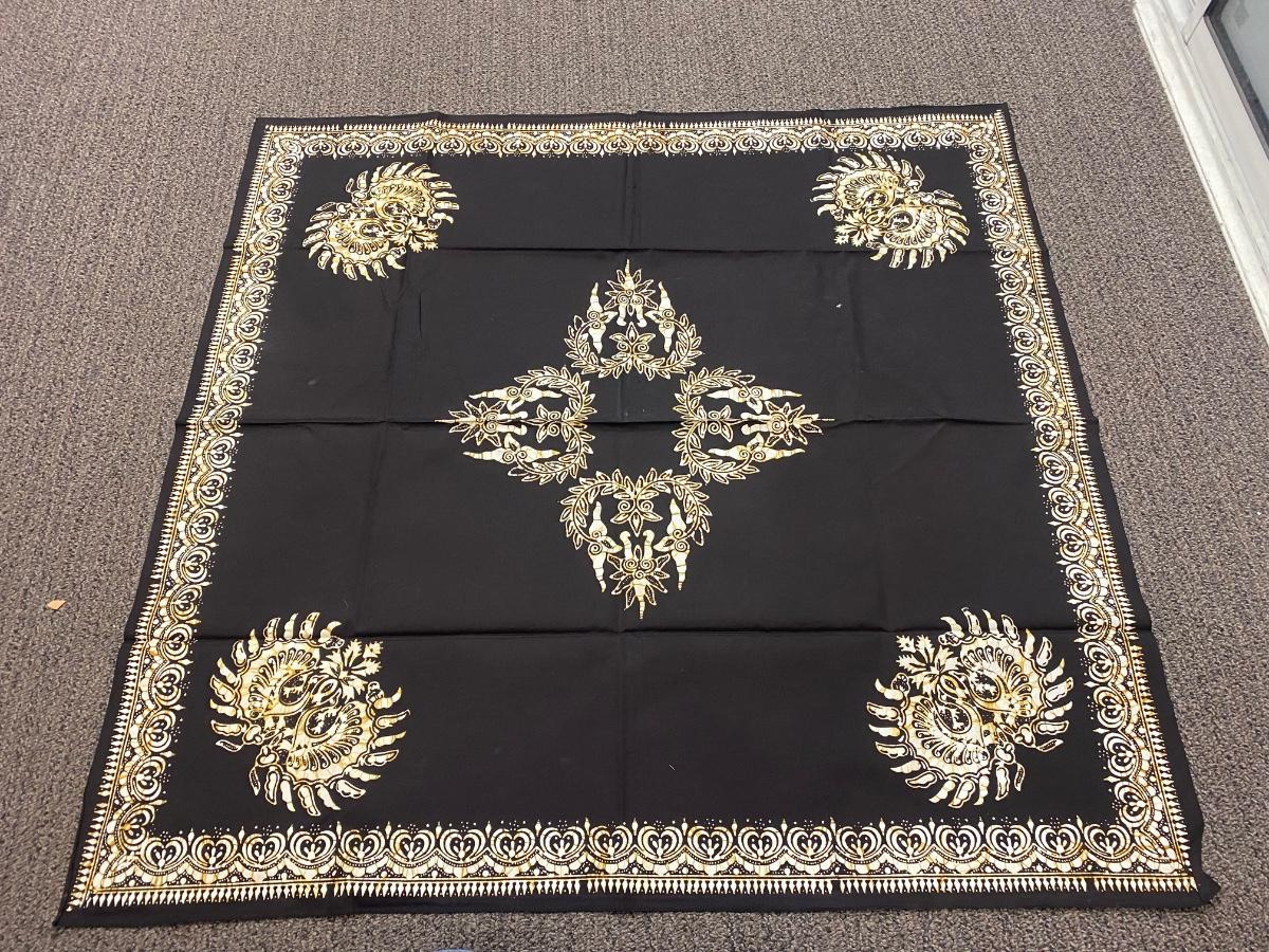 Vintage Black Tiki Tropical Design Tablecloth 34.5" Square. In good condition.