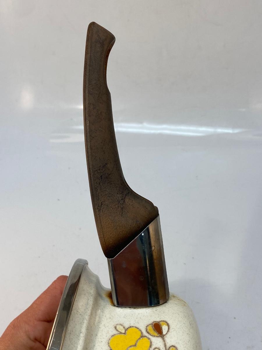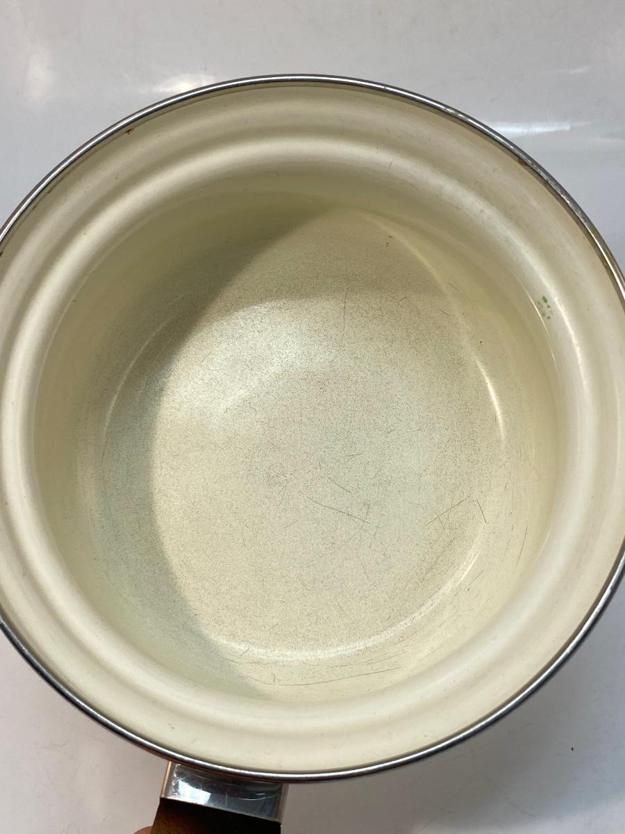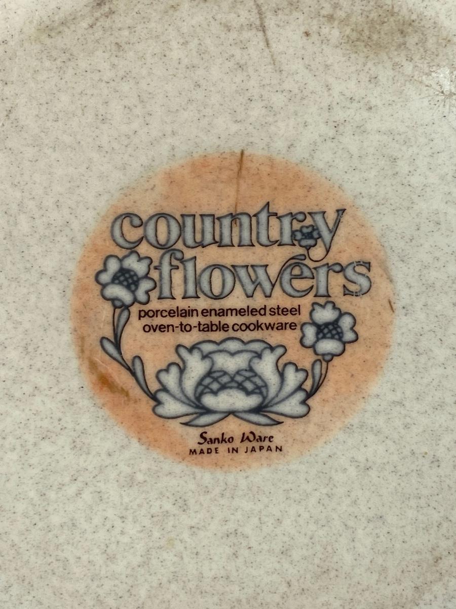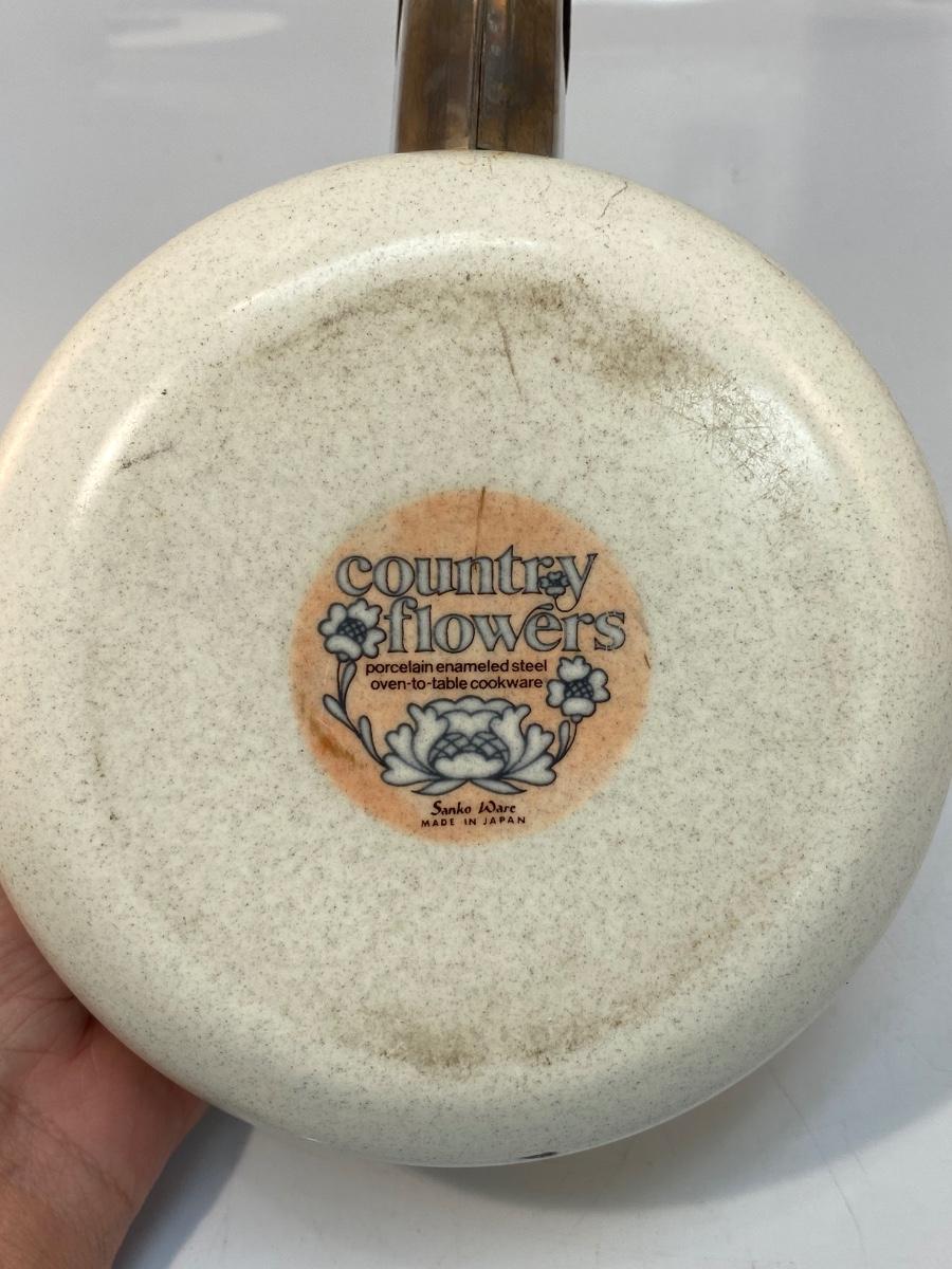 Retro Sanko Ware Japan Country Flowers Porcelain Enameled Cookware Orange & Yellow Flowers Small Saucepan. In previously used condition. Would display great. No lid.