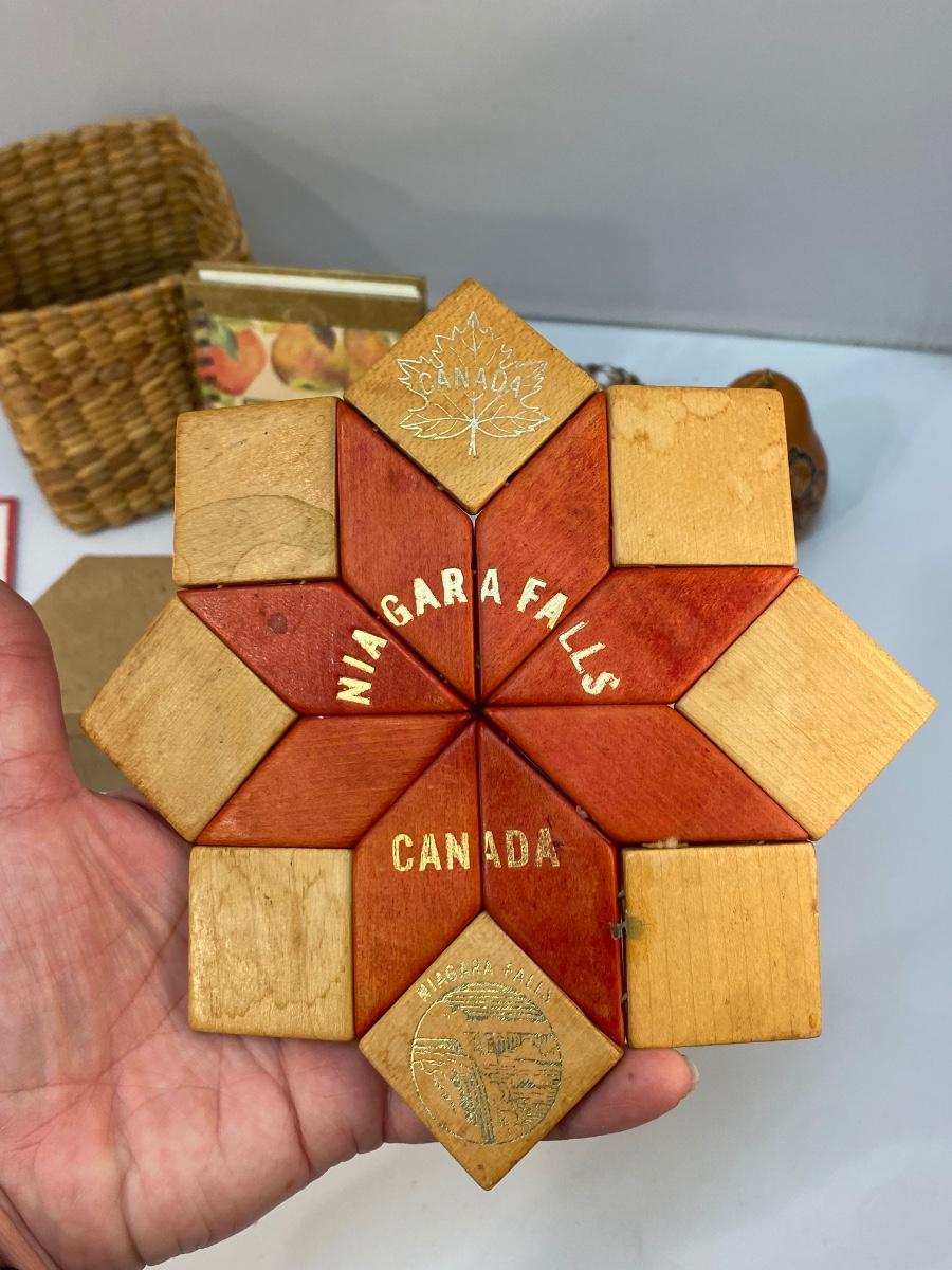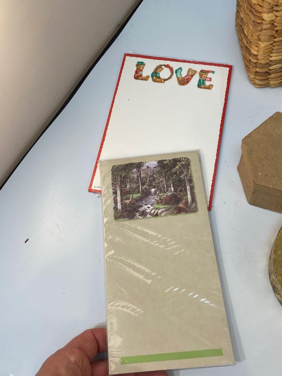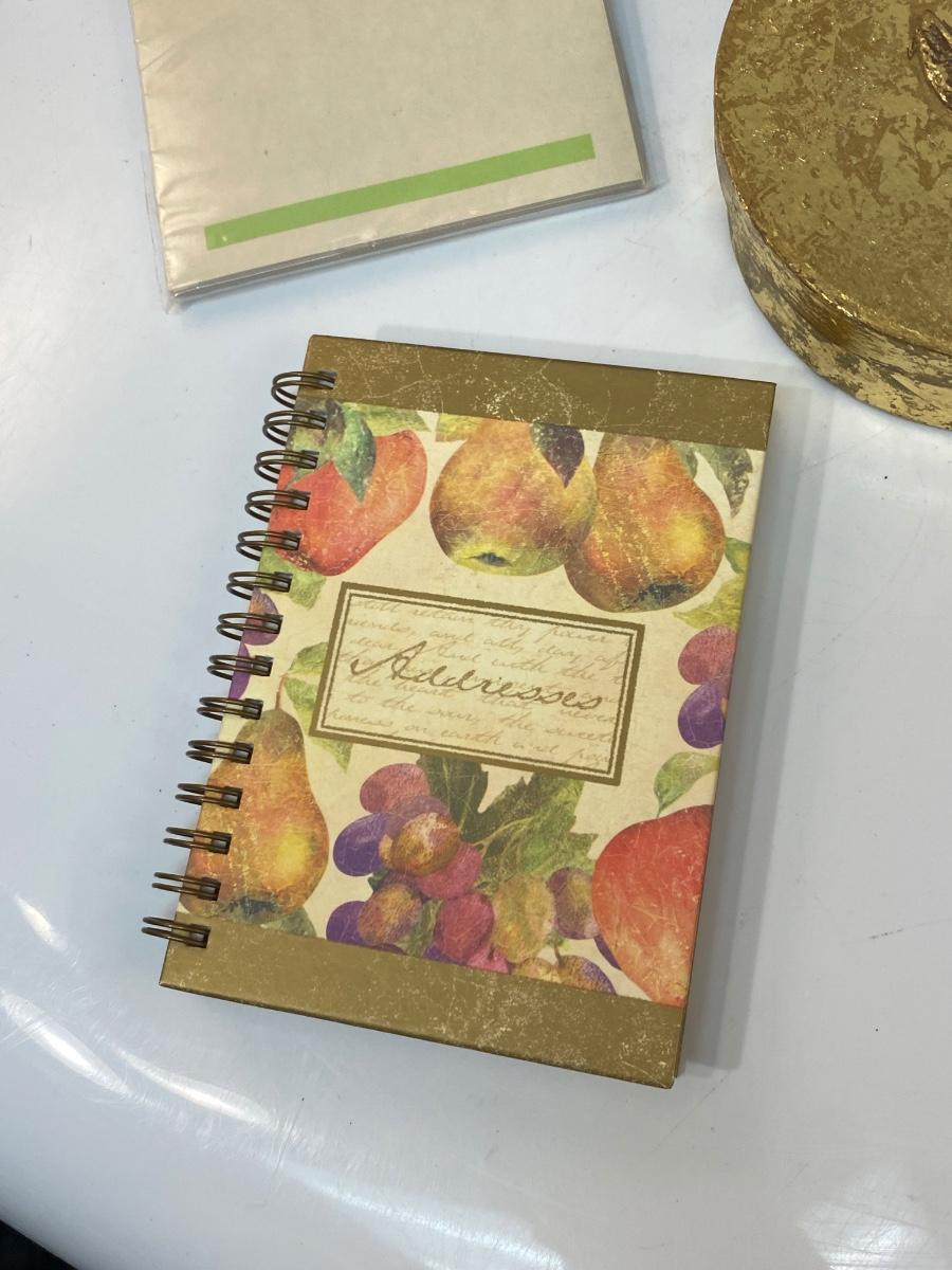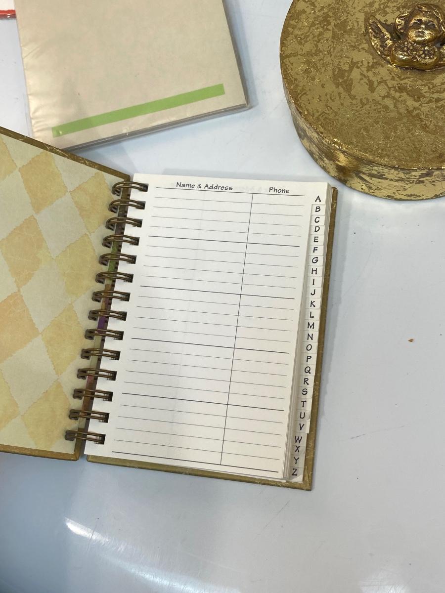 Mixed Lot of Trinket Boxes Stationary Shelf Decor and More. In good condition. The trinket boxes are Cardboard materials, Both notepads and address book are like new unused. Wood Trivet is a vacation souvenir from Niagara Falls but displays well upside down.