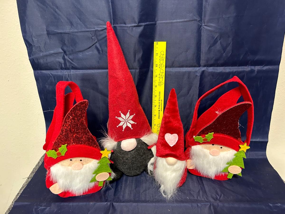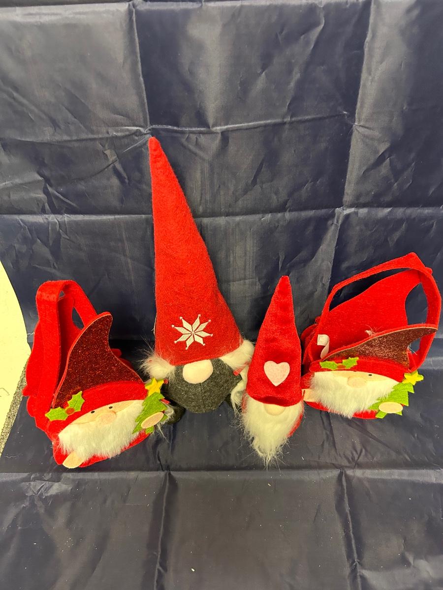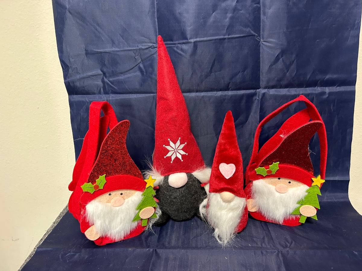 Christmas Holiday Seasonal Gnome Plush Felt Baskets Lot
