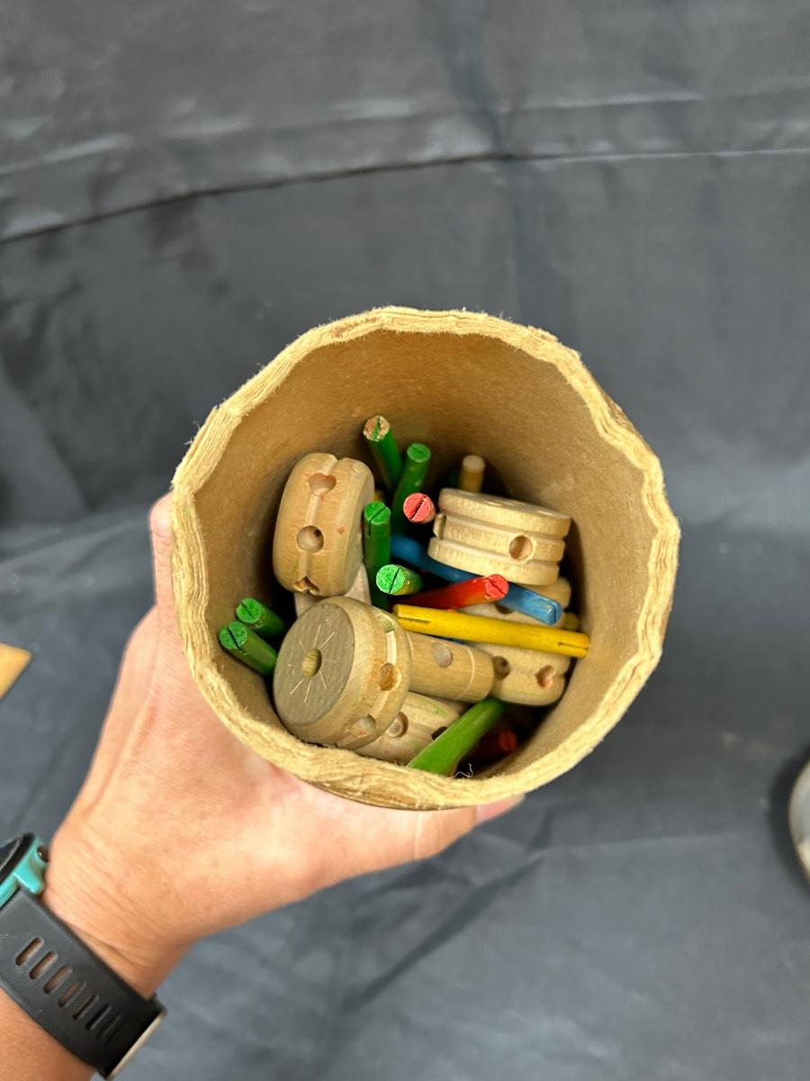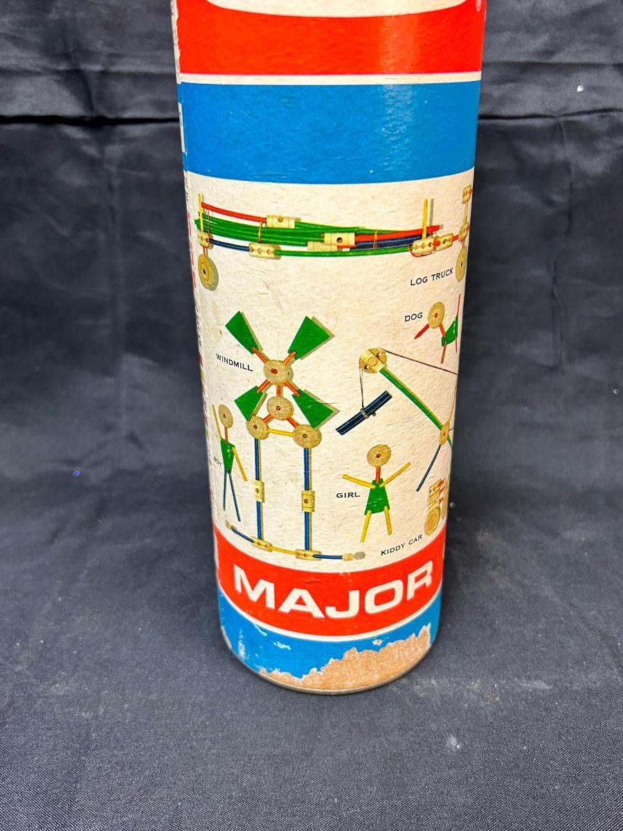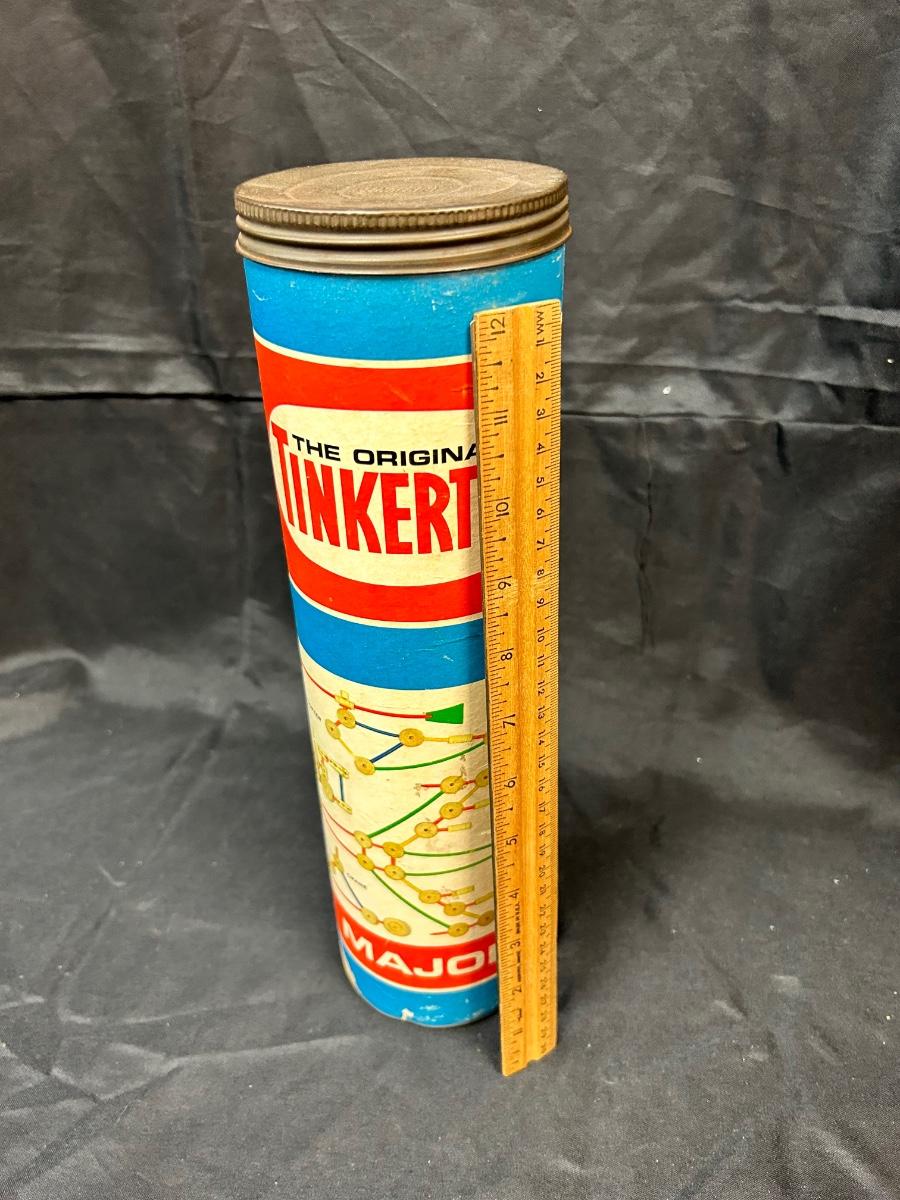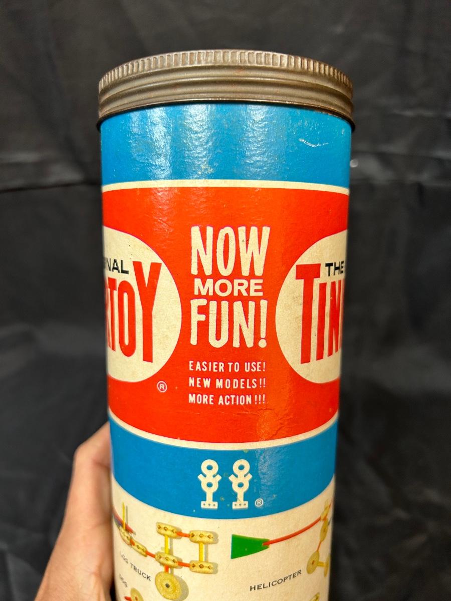 Vintage The Original Tinkertoy Wood Building Playset in Cardboard Tube Packaging
