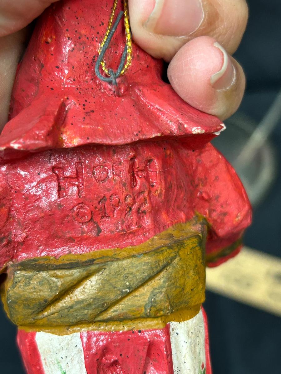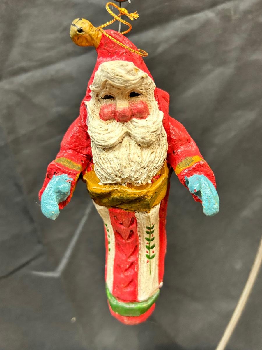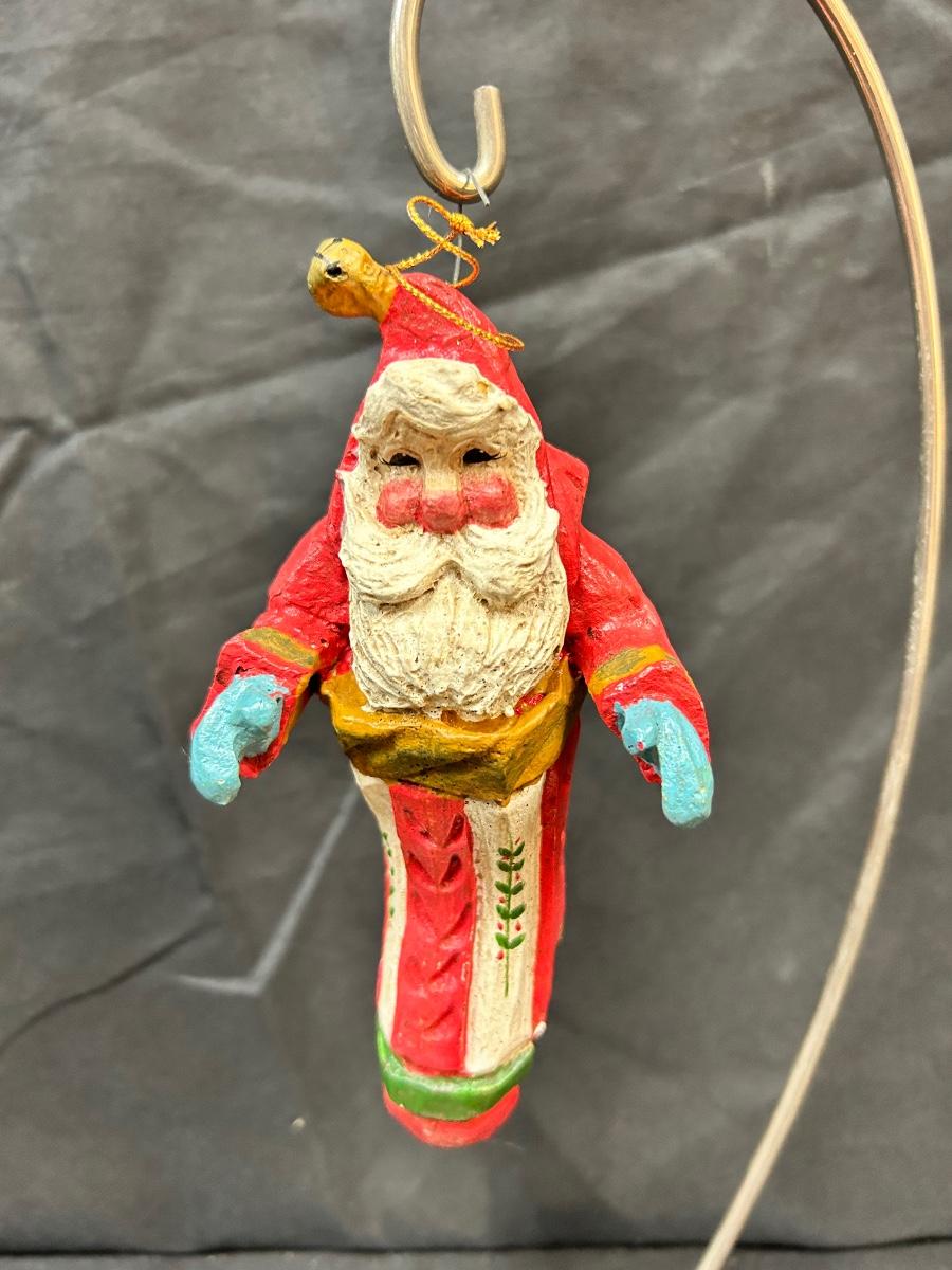 1992 House of Hatten Santa Claus in Stocking Folk Art Christmas Holiday Tree Ornament Figurine