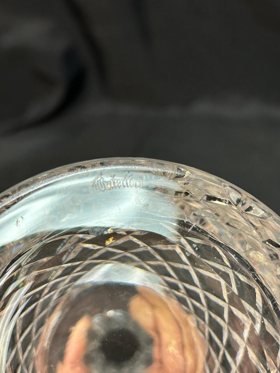Vintage Diamond Pattern Waterford Crystal Decanter Bottle No Stopper. Displays good. Does have a chip in the edge. Marked Waterford along the bottom.