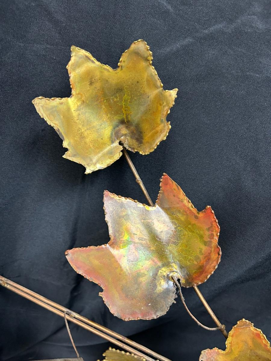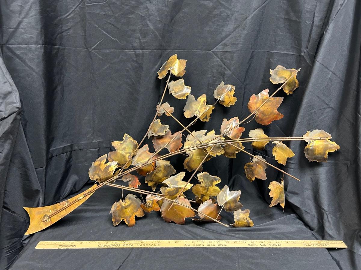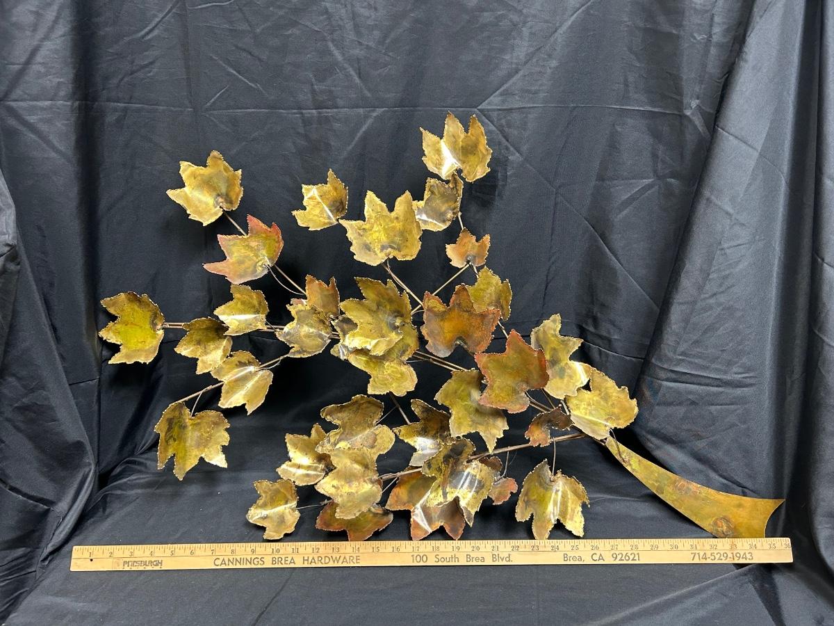 Vintage Midcentury Brutalist Wall Hanging Metal Torch Art Tree Branch with Leaves