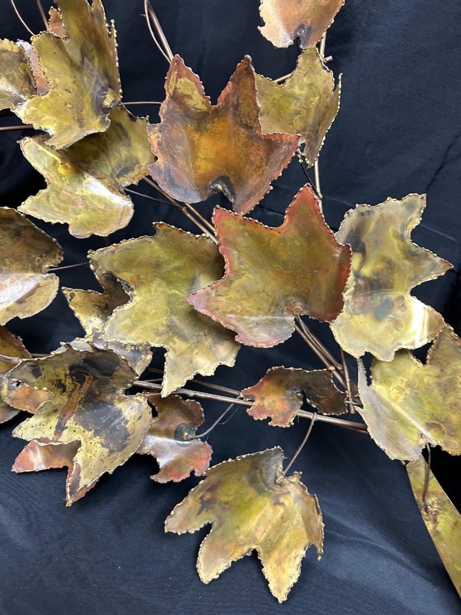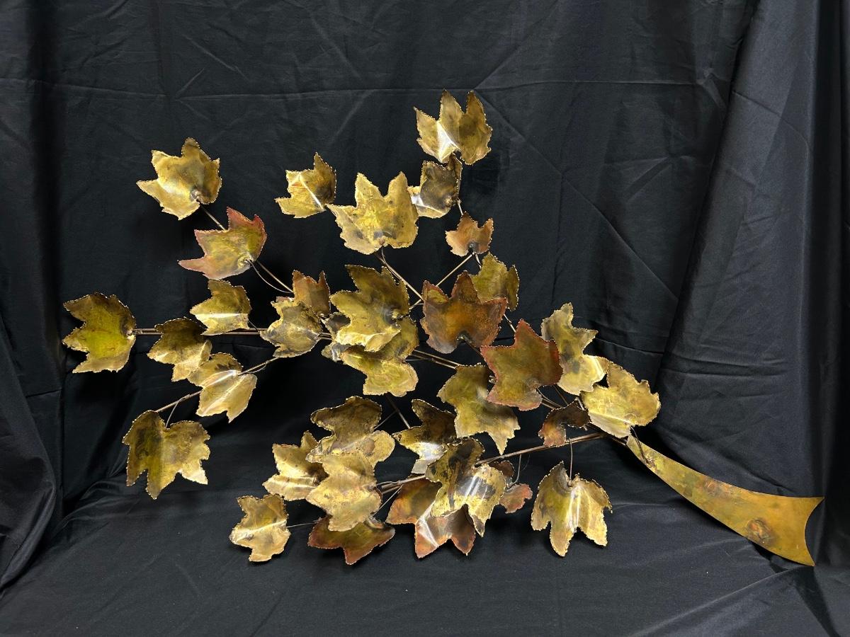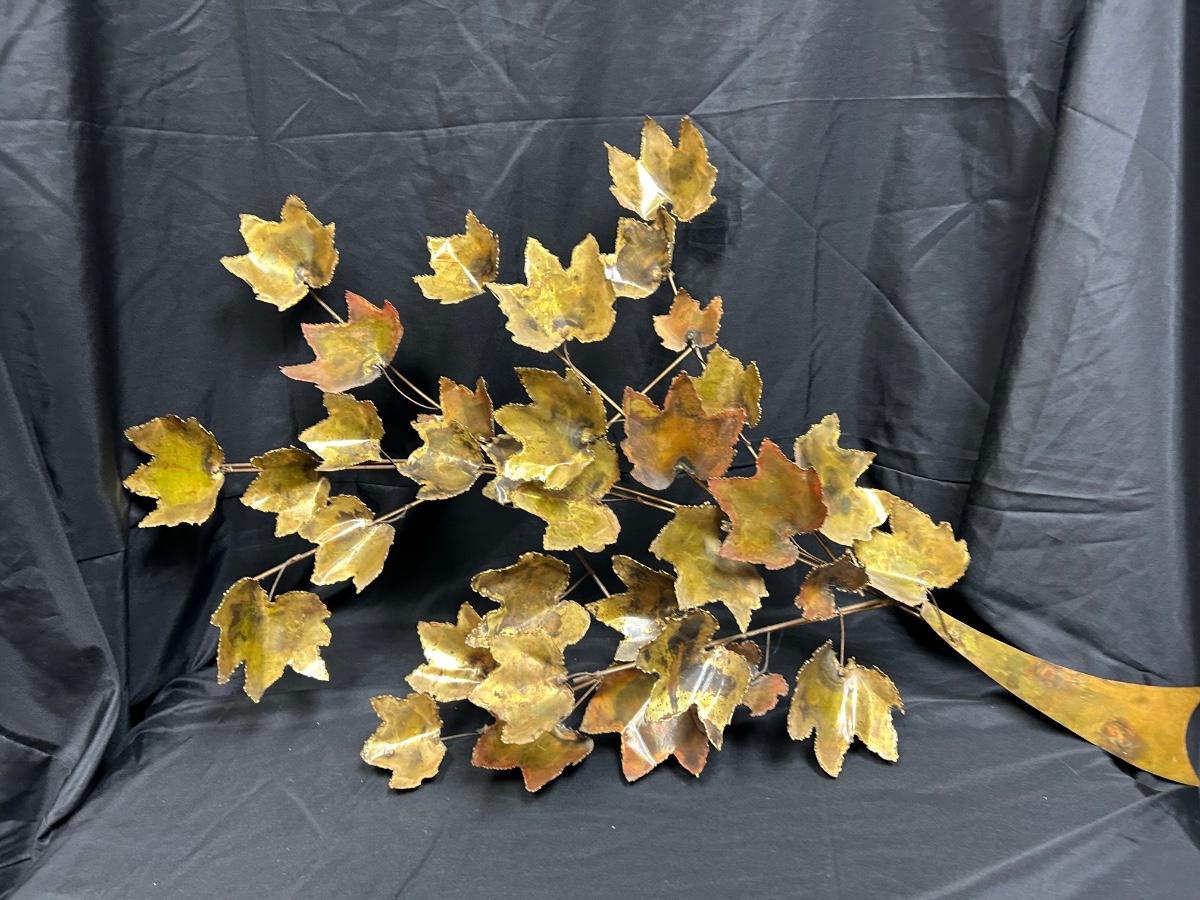Vintage Midcentury Brutalist Wall Hanging Metal Torch Art Tree Branch with Leaves