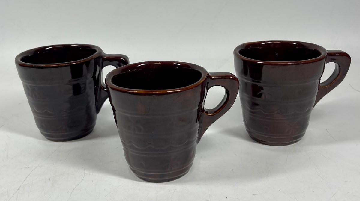 3 Mar-crest Daisy & Dot Pottery Stoneware Brown Mugs Coffee Cup USA