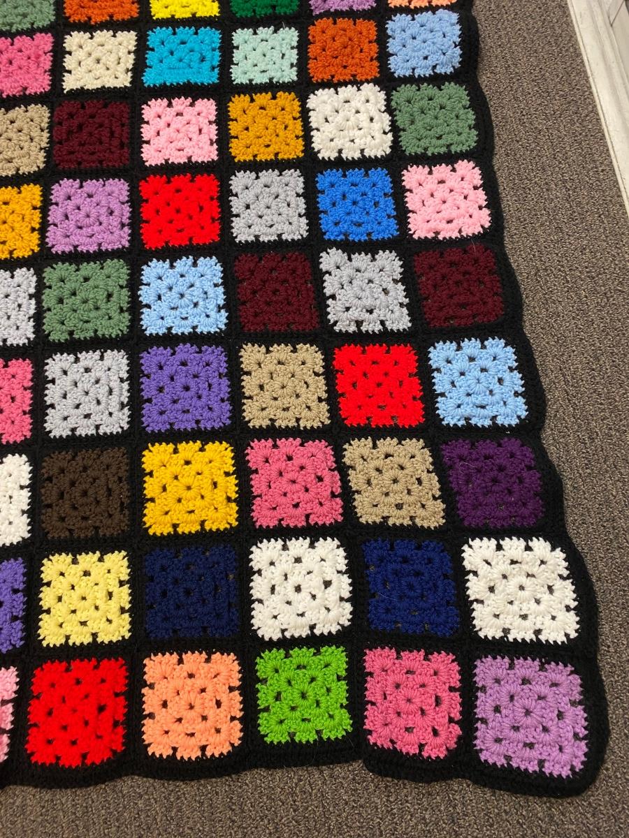 Small Colorful Block Pattern Crochet Afghan Throw Blanket