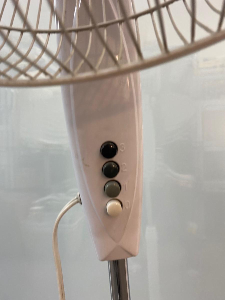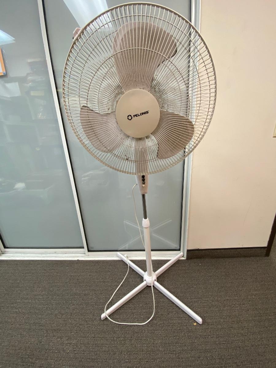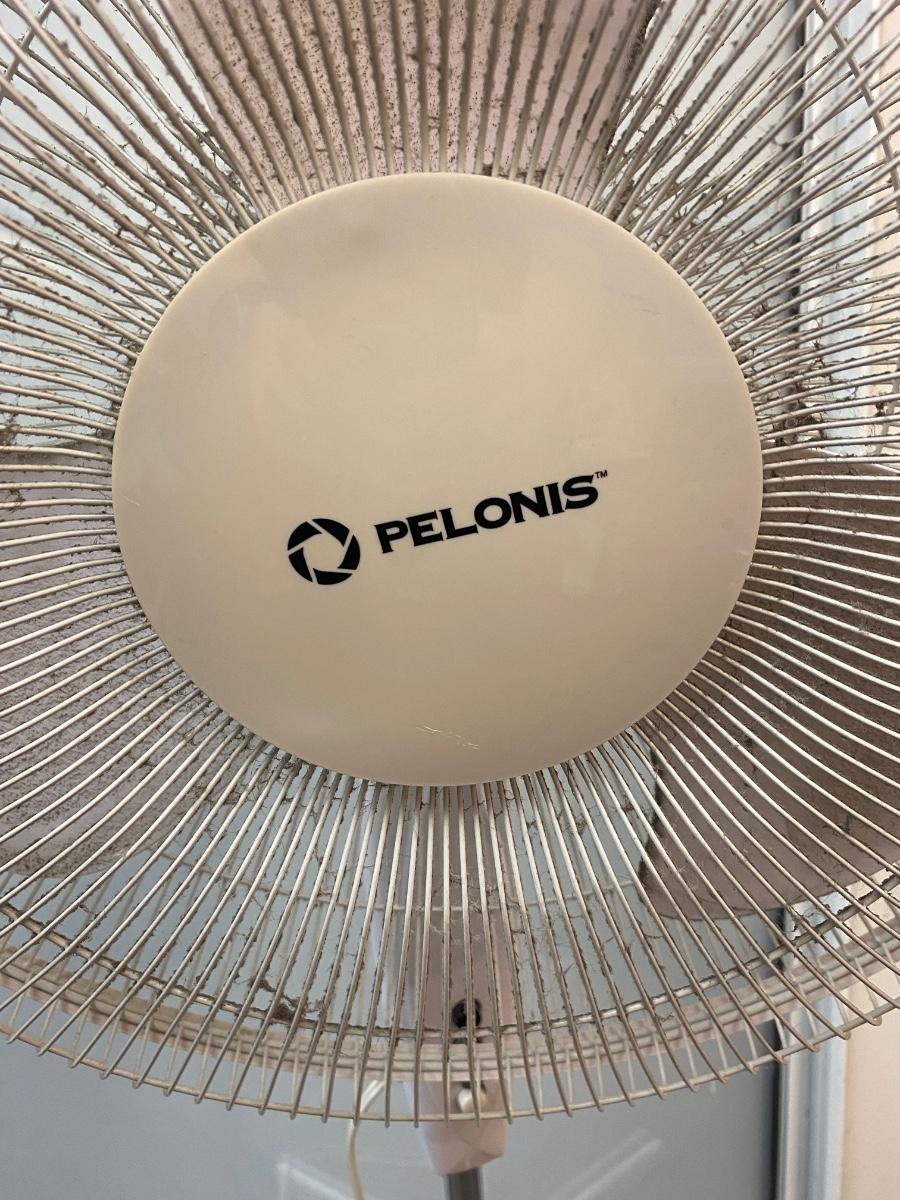 Pelonis White Three Speed Oscillating Floor Stand Fan. Works. Needs to be cleaned.