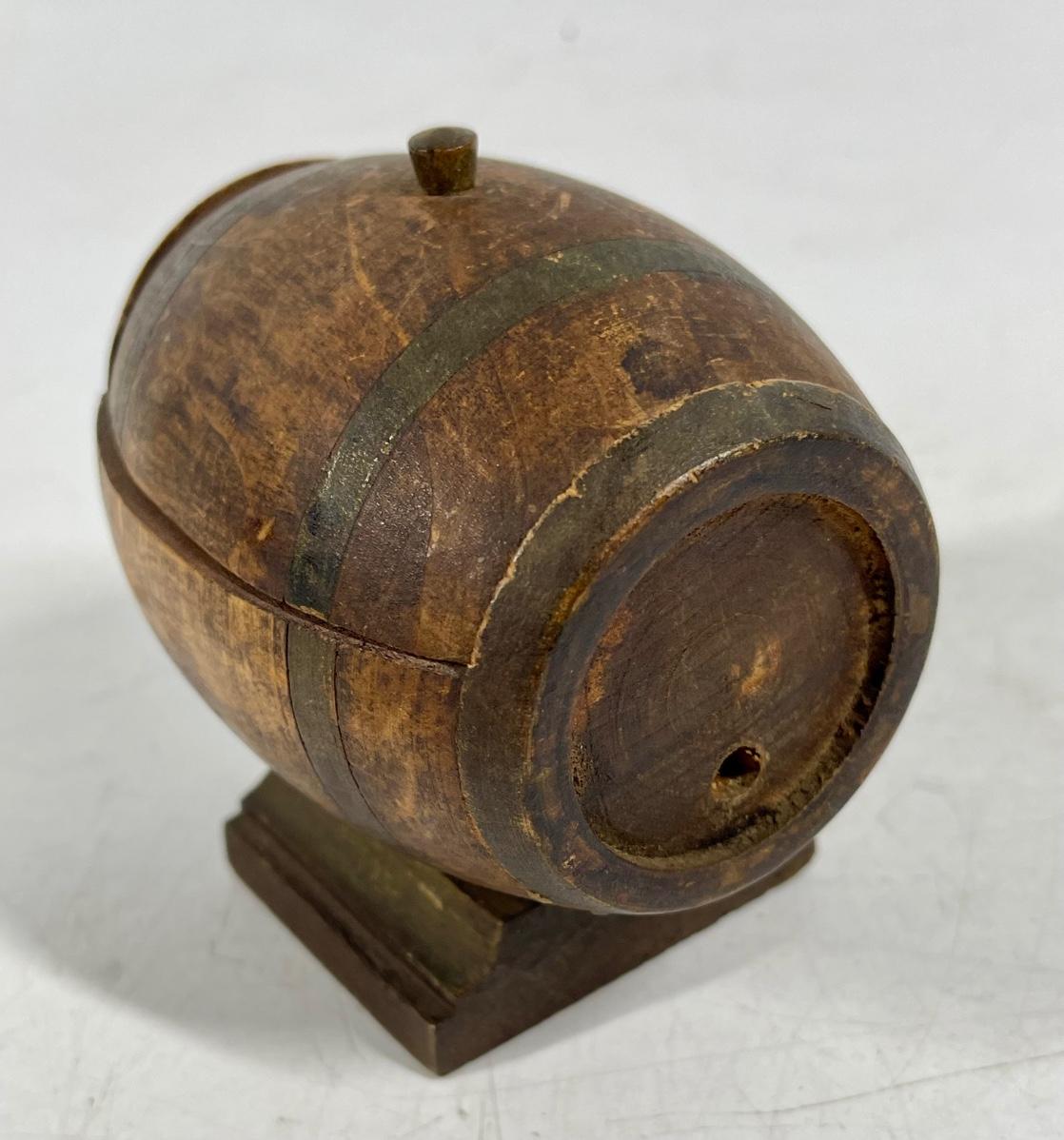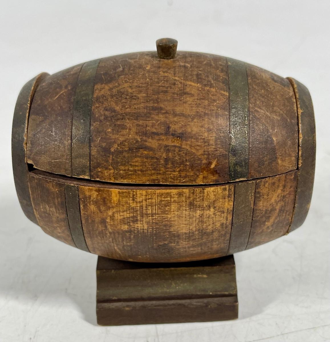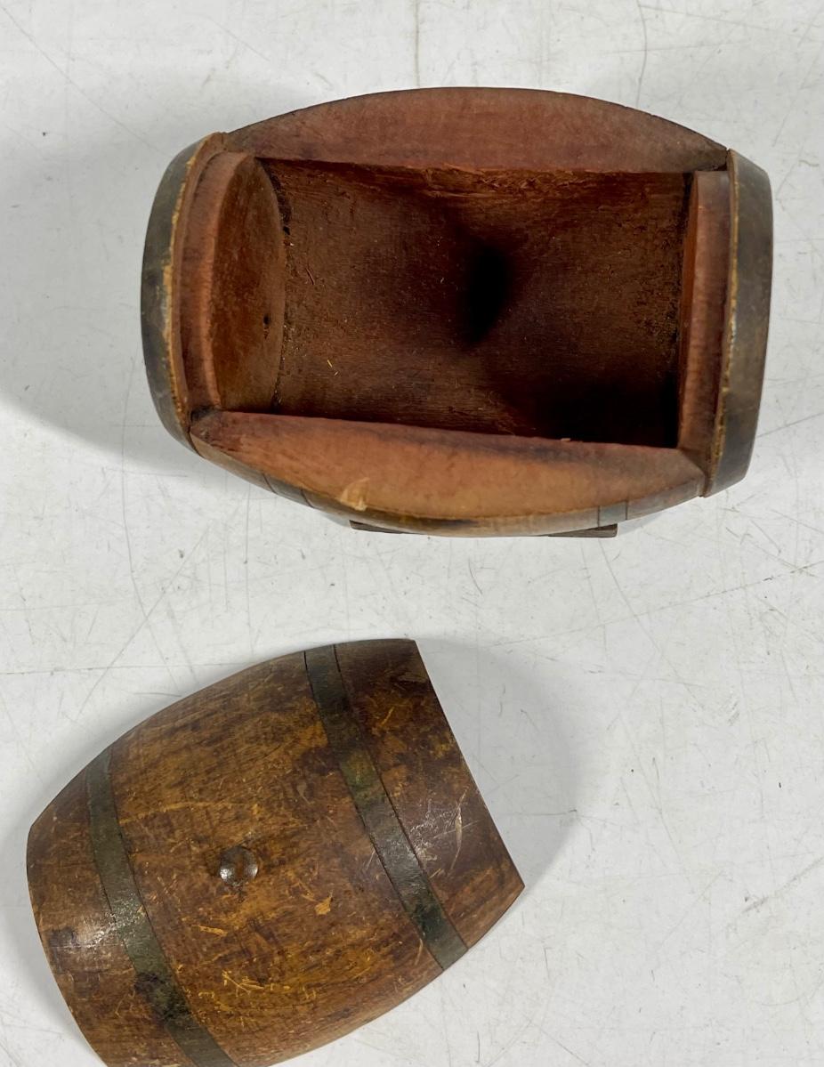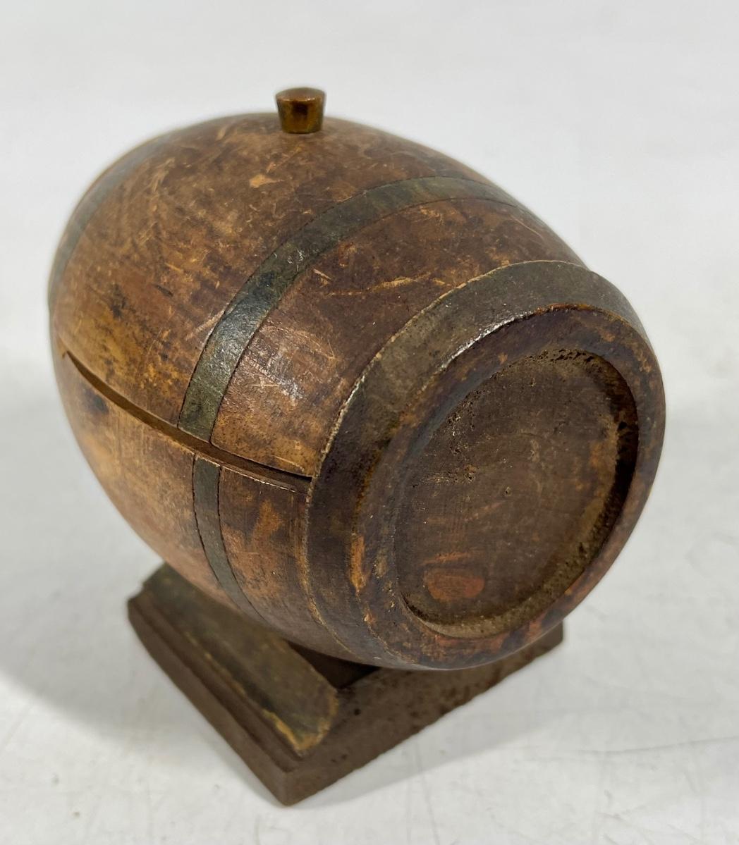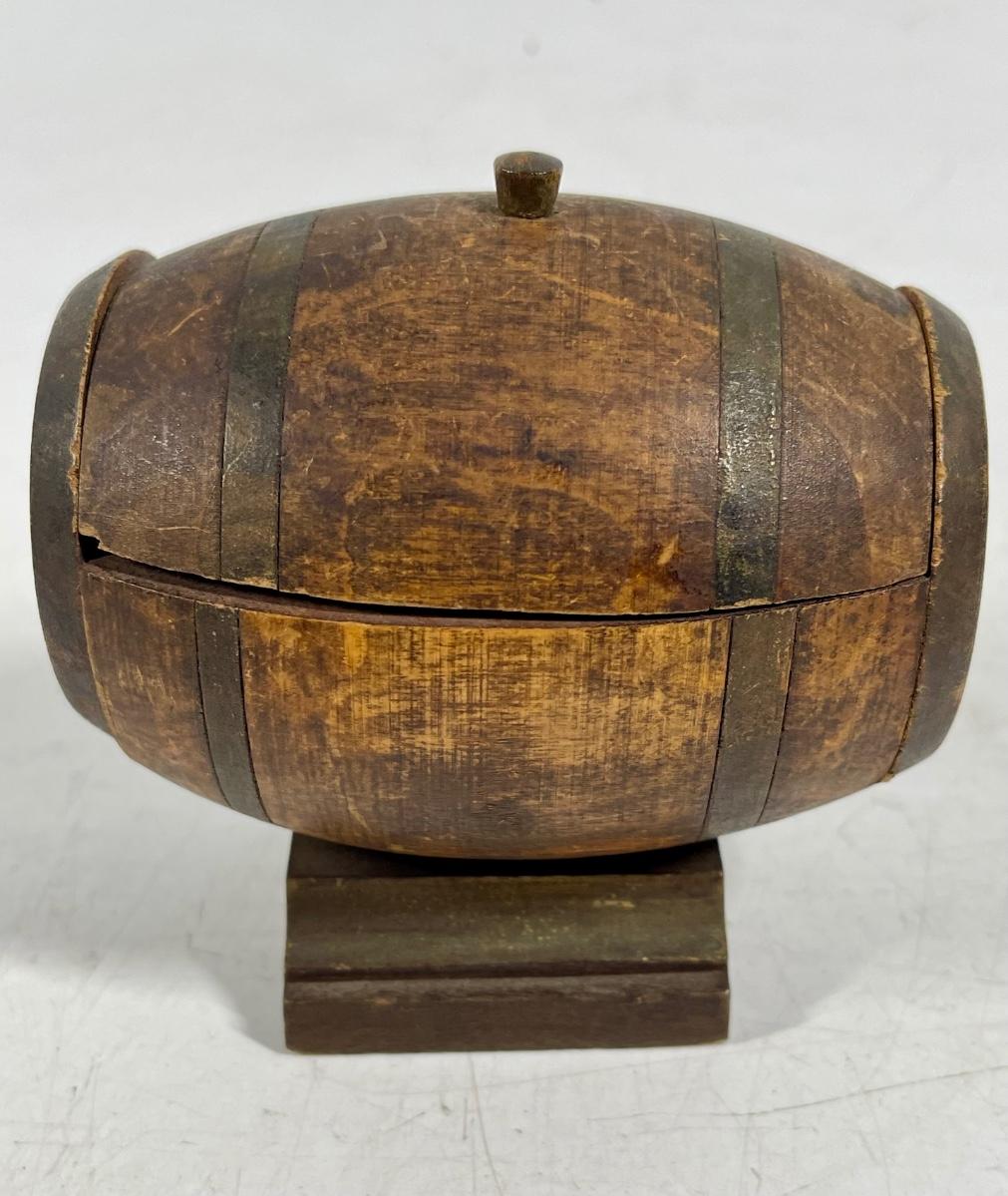 Antique Treen Money Box Wine Barrel Wood Bank Safe Trinket Box
