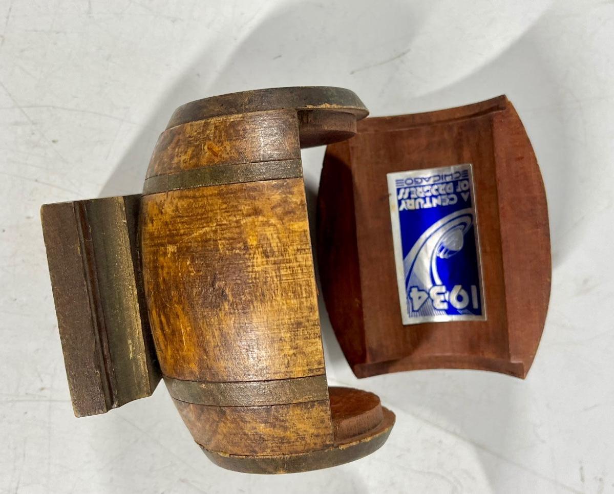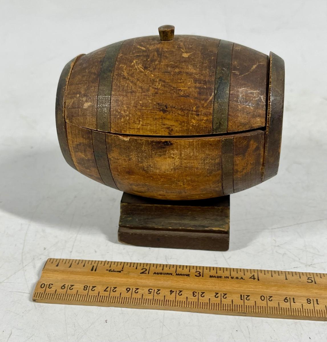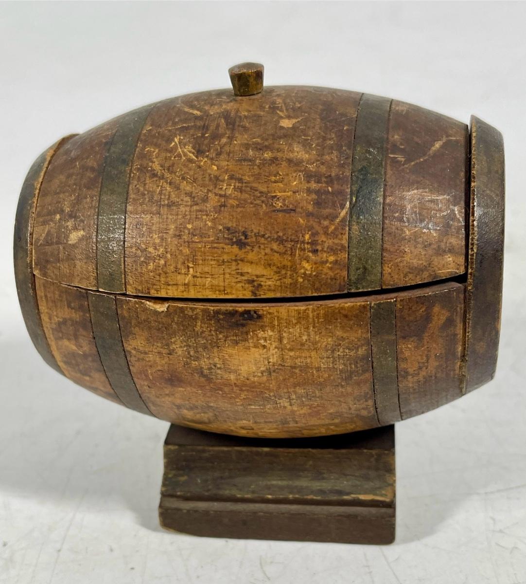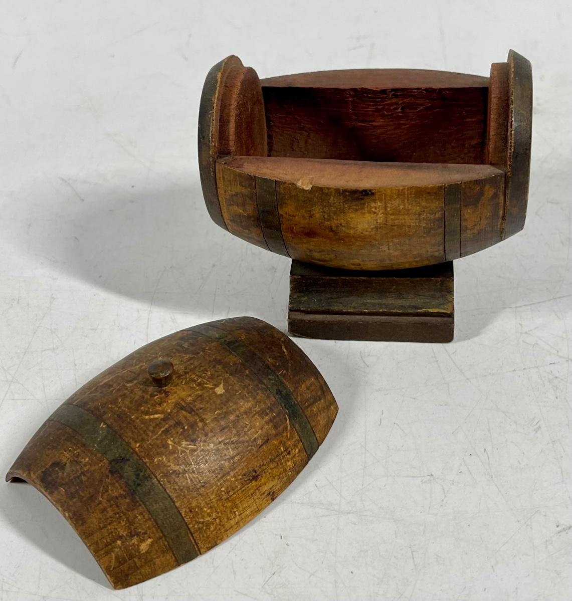 Antique Treen Money Box Wine Barrel Wood Bank Safe Trinket Box