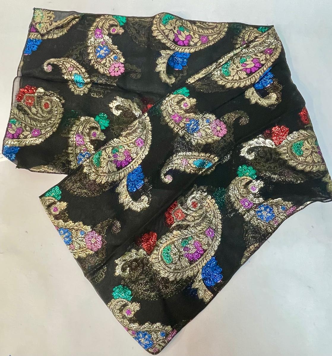 Metallic Rayon Scarf made in Japan Black Gold Purple Green Blue
