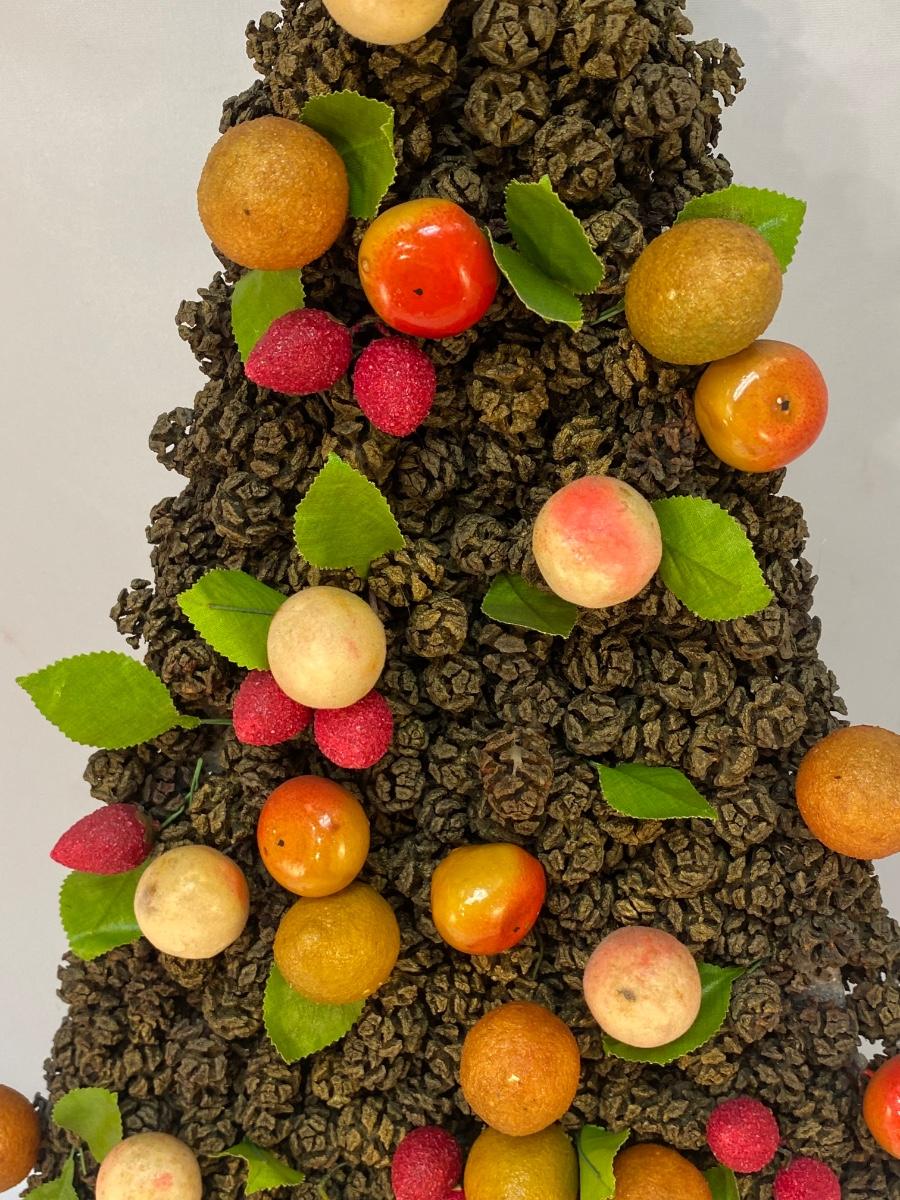 Vintage Handmade Pinecone and Artificial Fruit Covered Foam Christmas Holiday Tree Hanging Decor