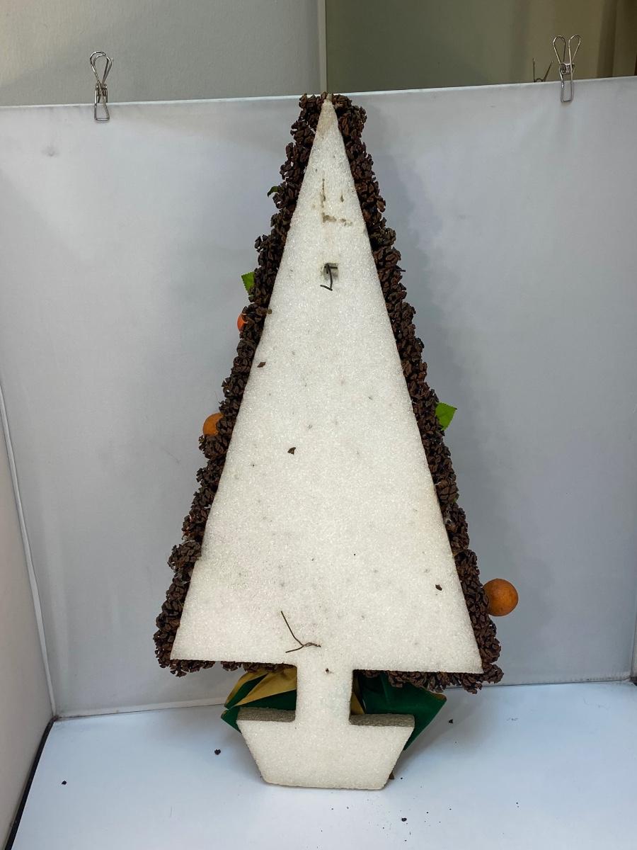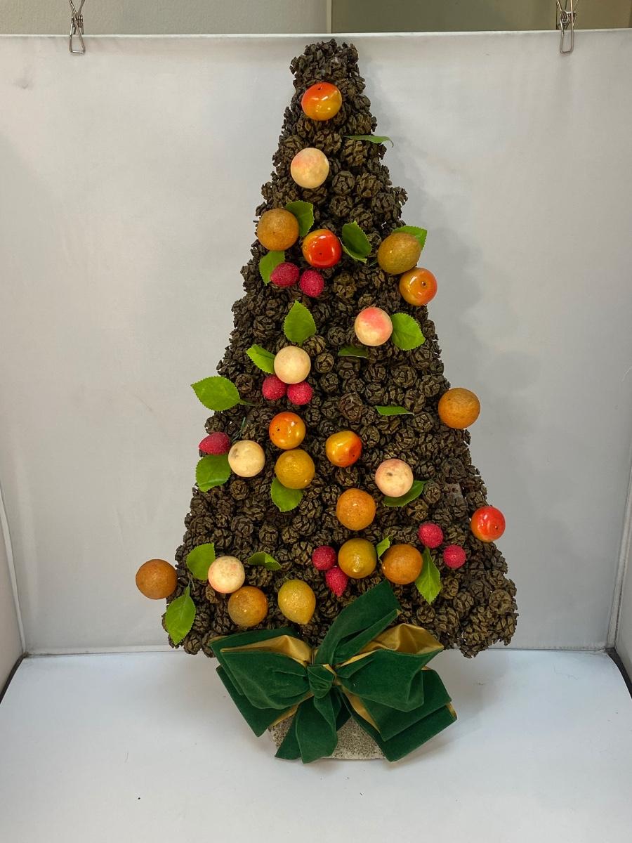 Vintage Handmade Pinecone and Artificial Fruit Covered Foam Christmas Holiday Tree Hanging Decor. In vintage condition. Pinecones are a little delicate from age. About 24" size.
