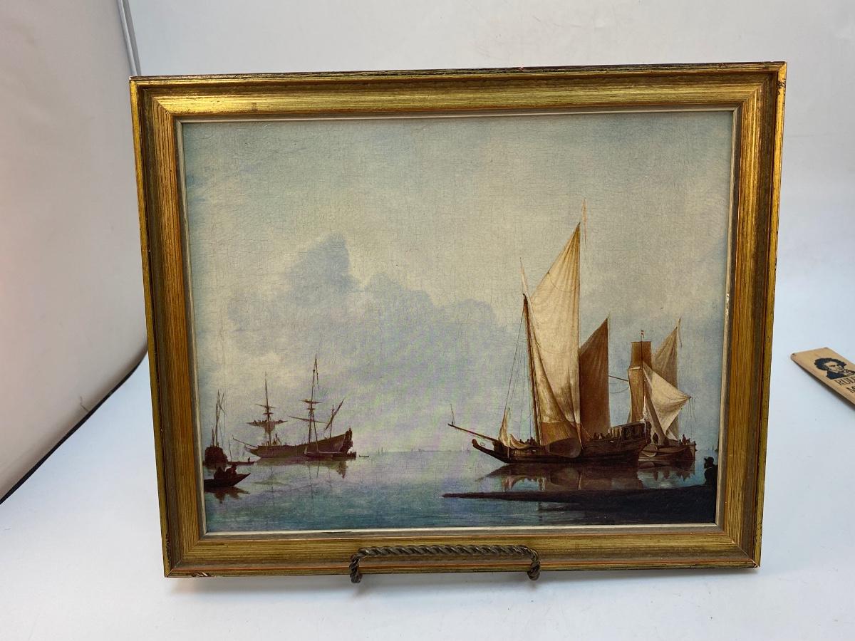 Small Vintage Art Print A Dutch Yacht and Other Vessels by Hendrick Dubbels
