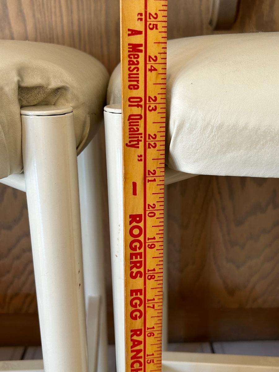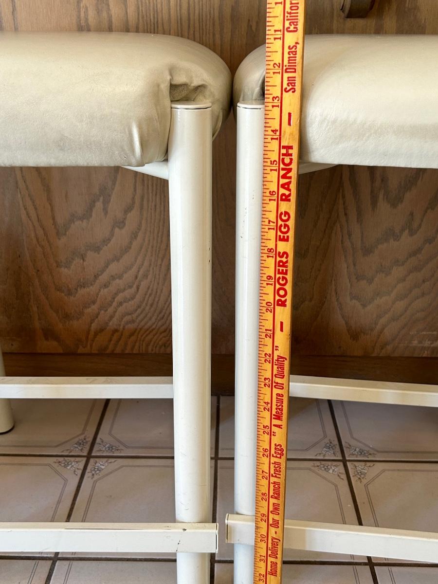Pair of Retro 1980s Metal Barstools Cream Colored Vinyl Seats