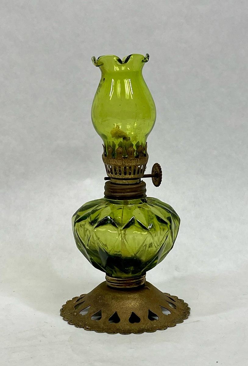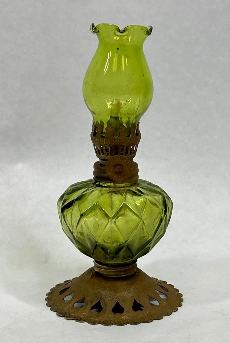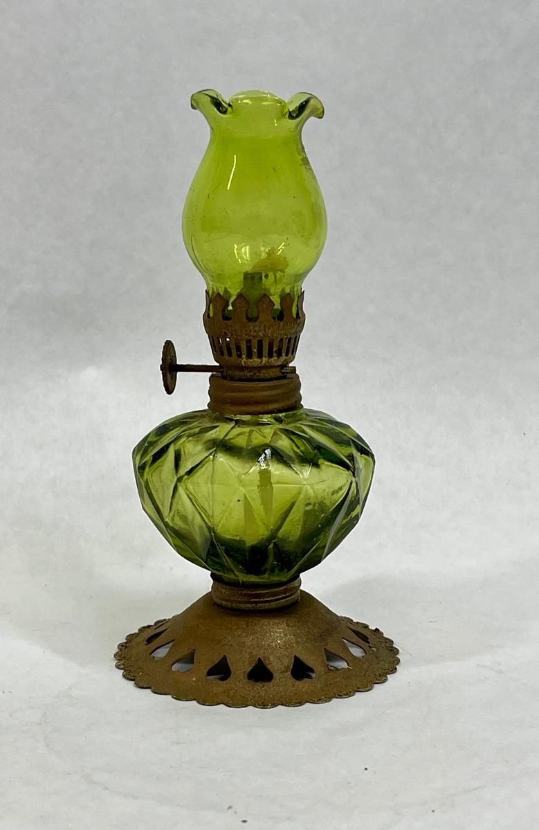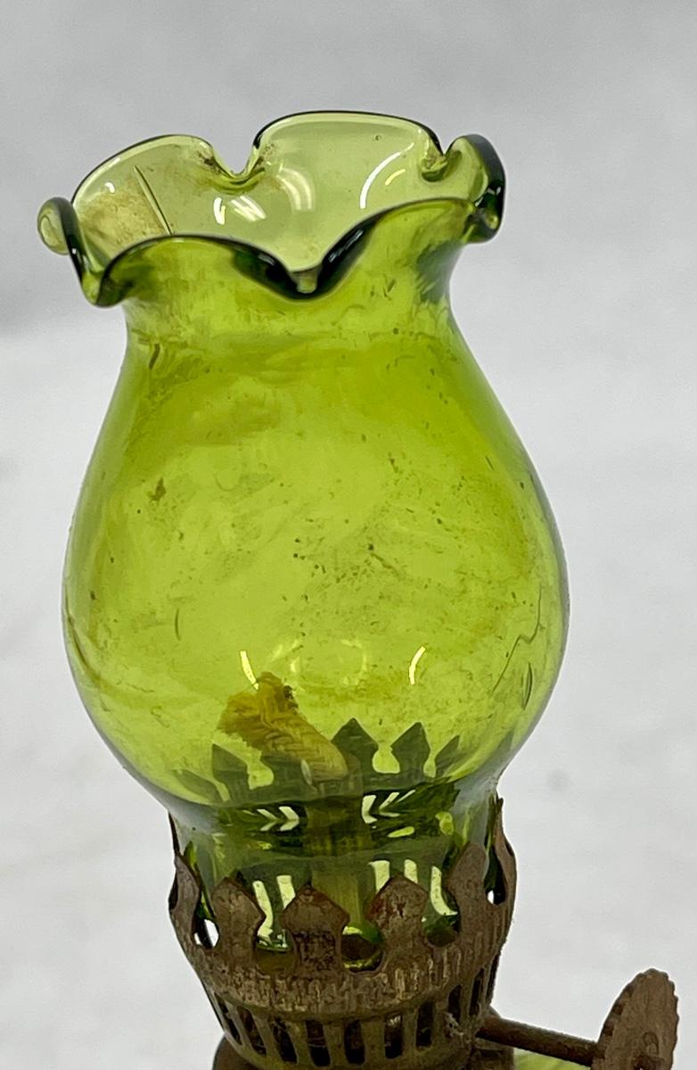 Rare Tiny Oil Lamp Green glass and brass unknown maker