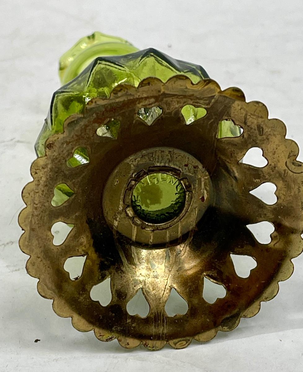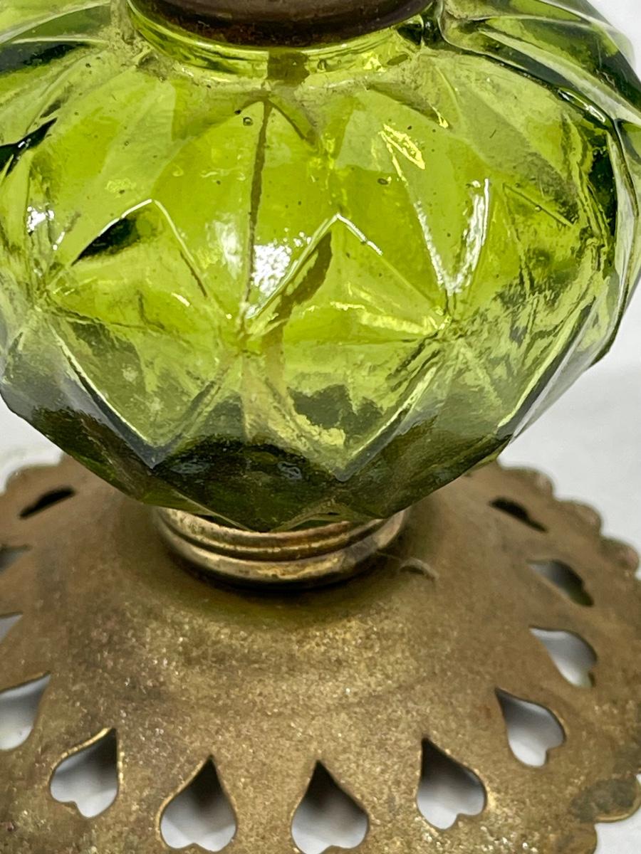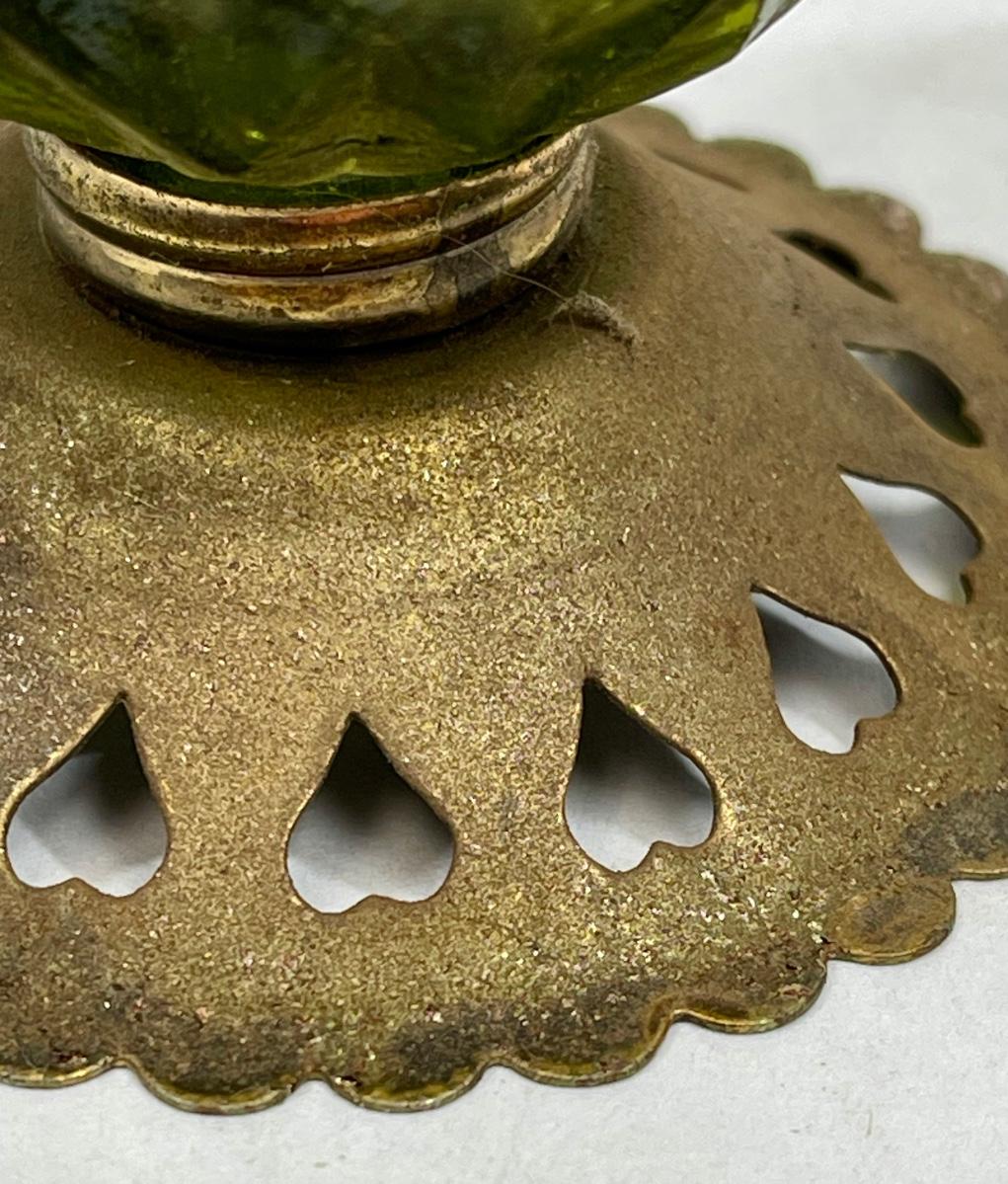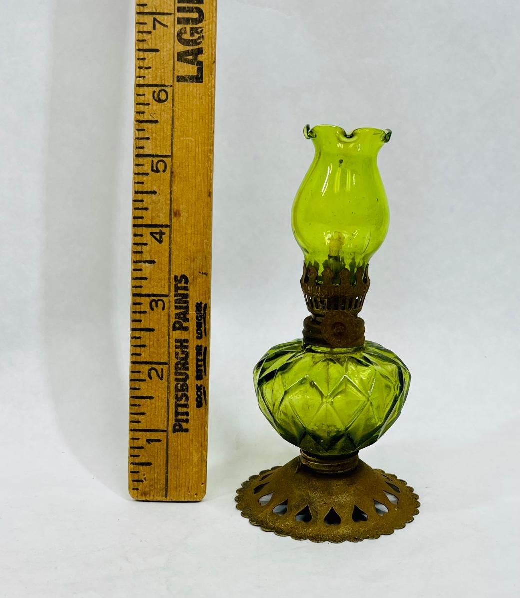 Rare Tiny Oil Lamp Green glass and brass unknown maker
