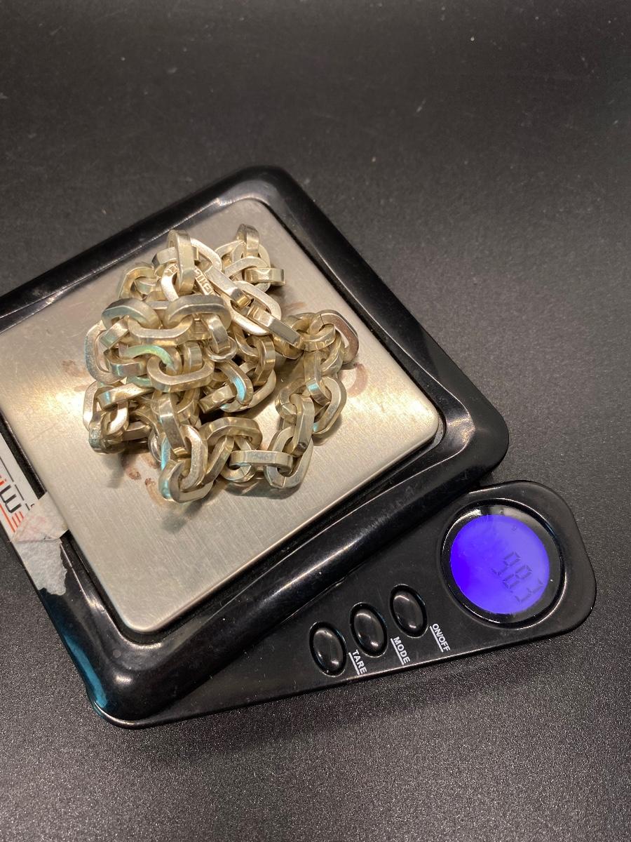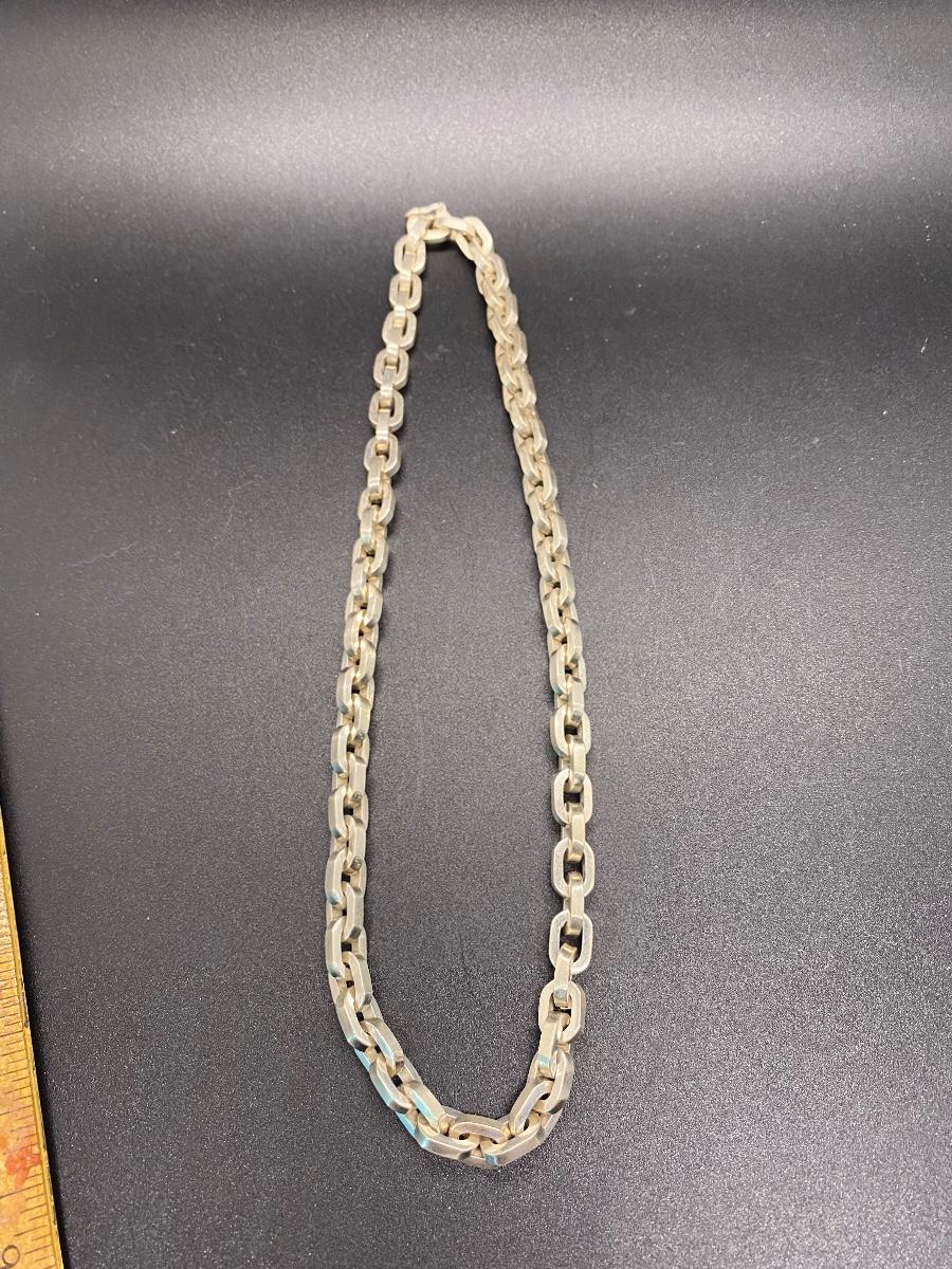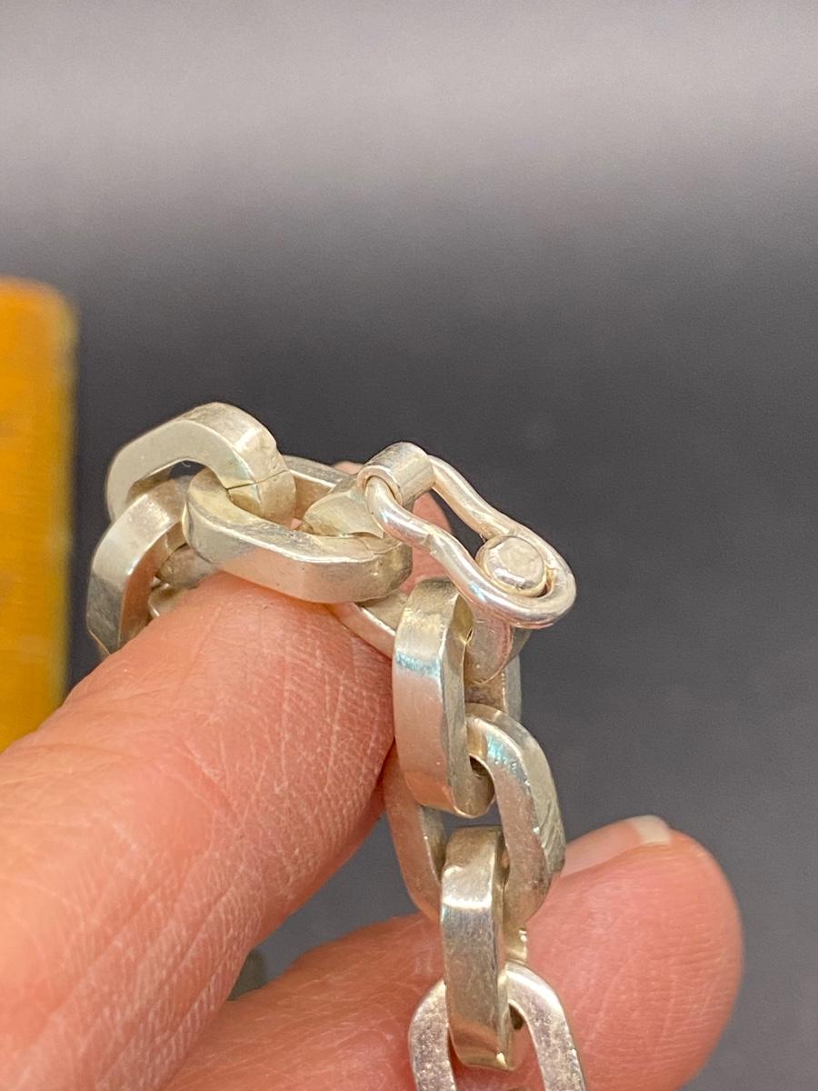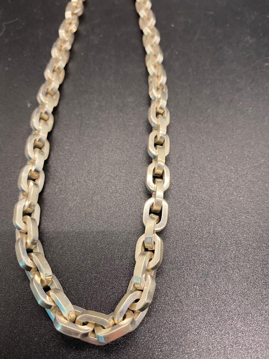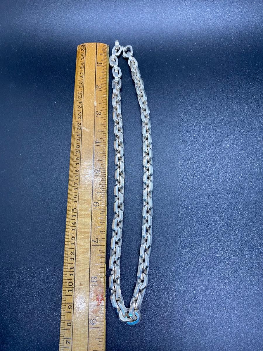 Heavy link sterling silver necklace, made in Mexico. Large link chain, About 9" drop, 18" end to end. Stamped on end. 98.3g tw.