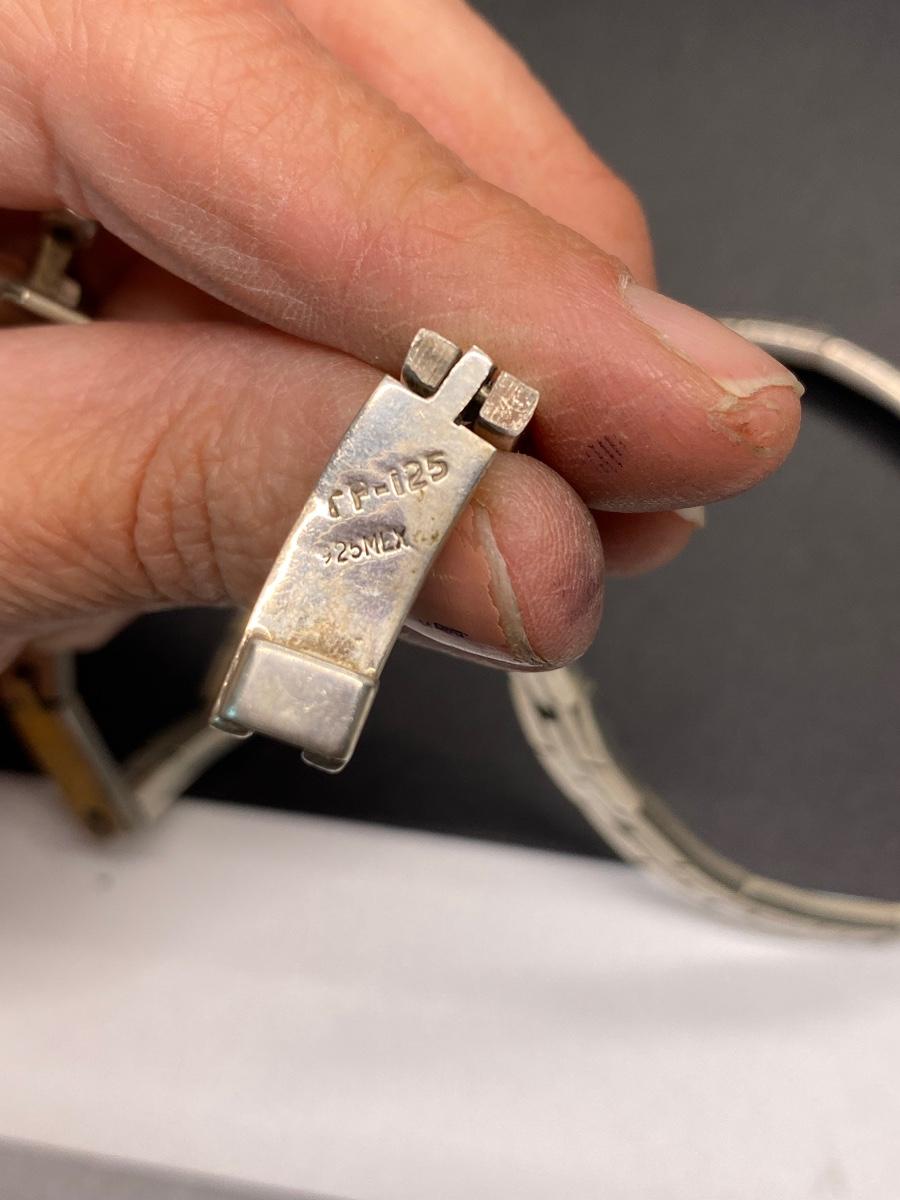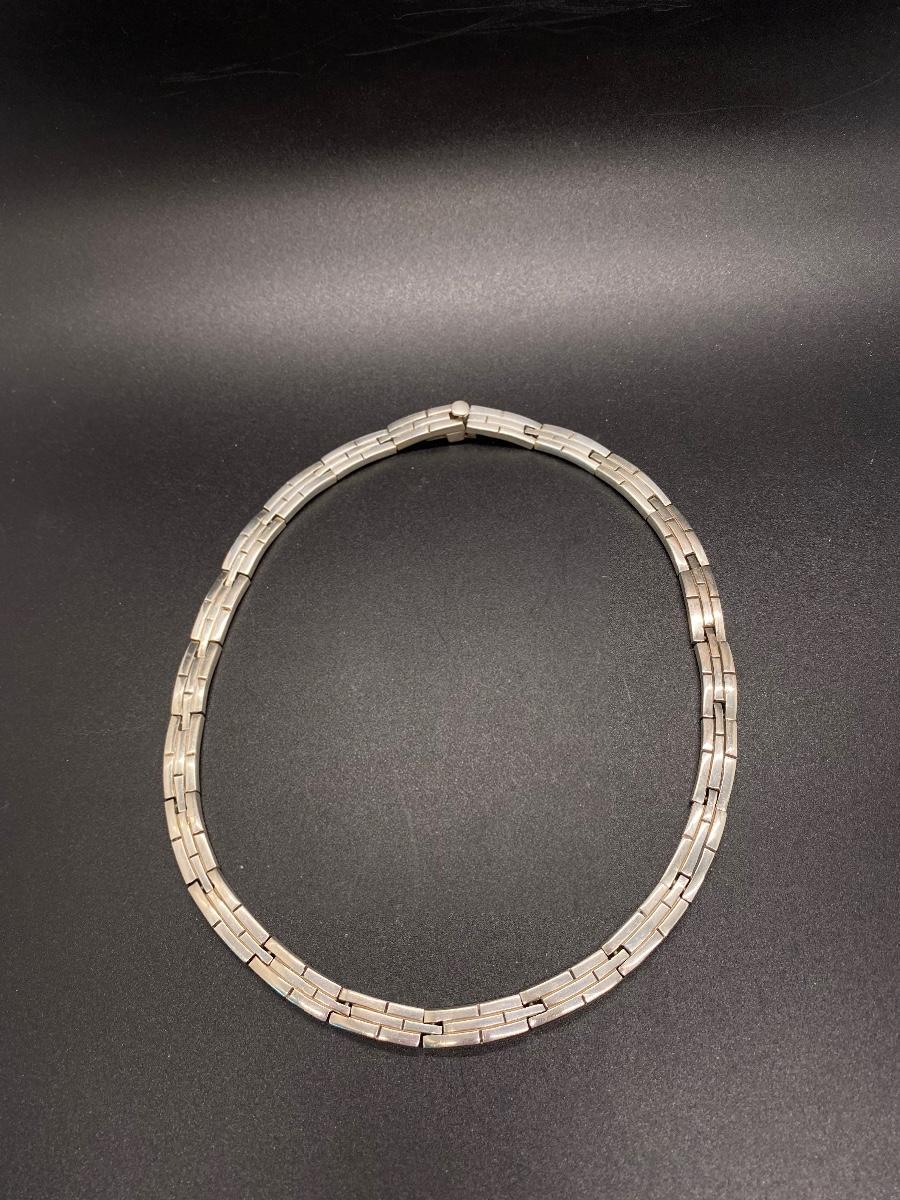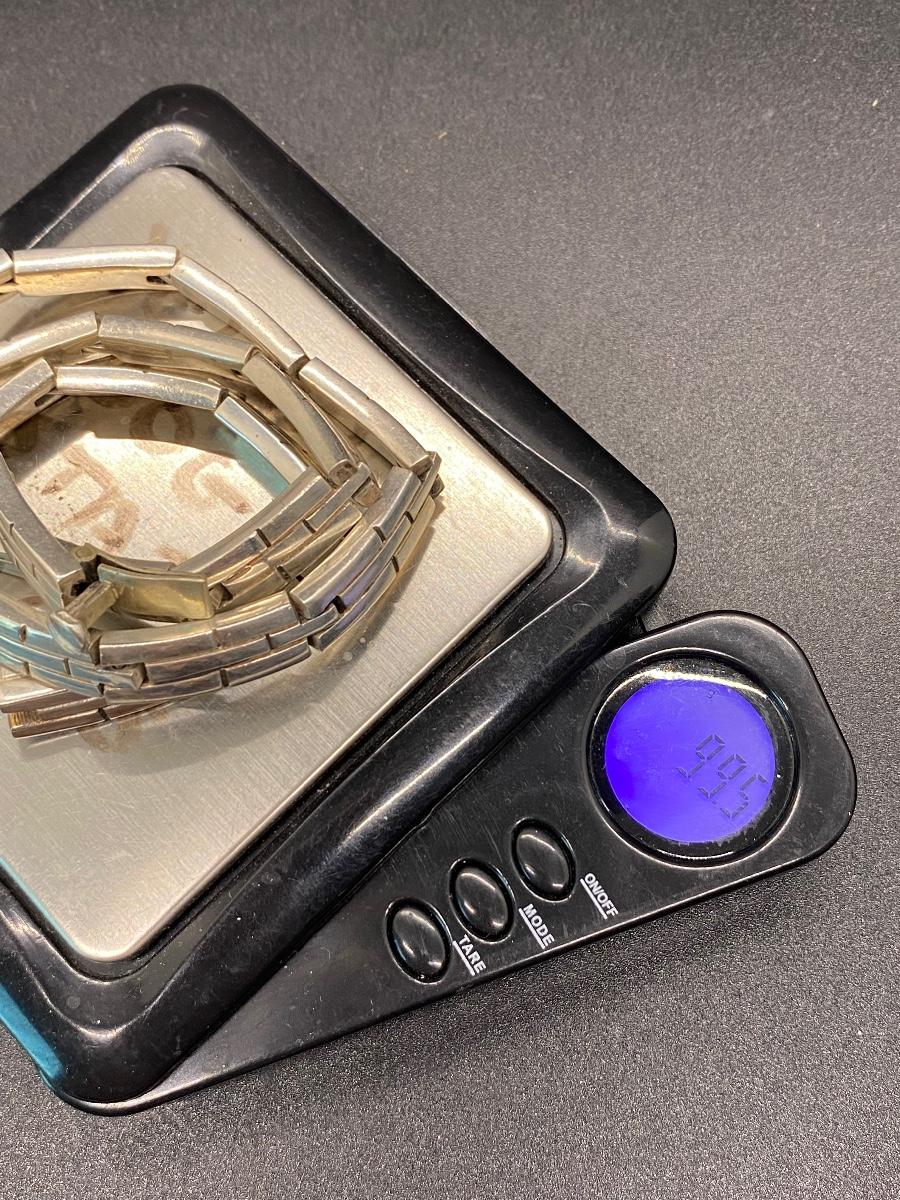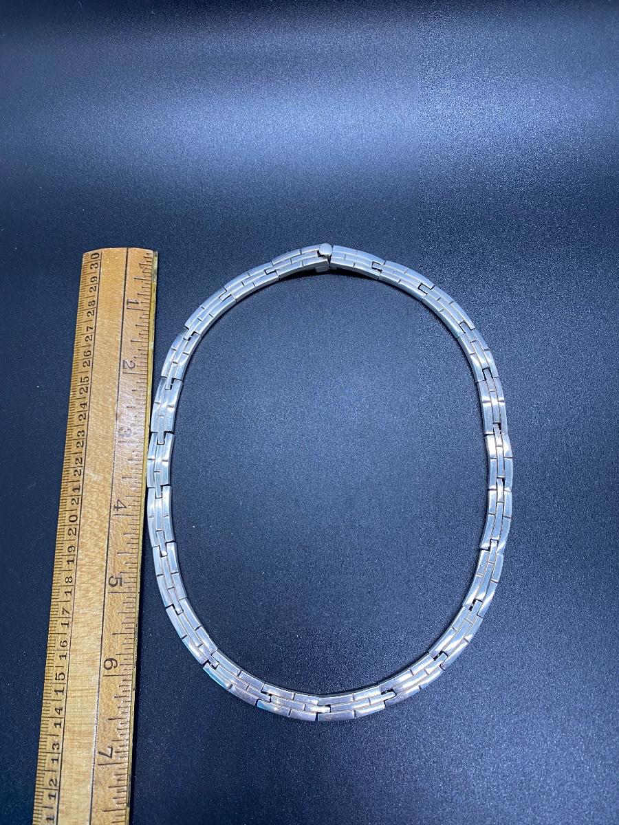 Matching sterling silver 925 bracelet and necklace set. Subway tile style link chain. Marked at the ends. Heavy. Necklace sits at about collar bone. Bracelet is 8". Total weight for both pieces is 147.3g. Made in Mexico.