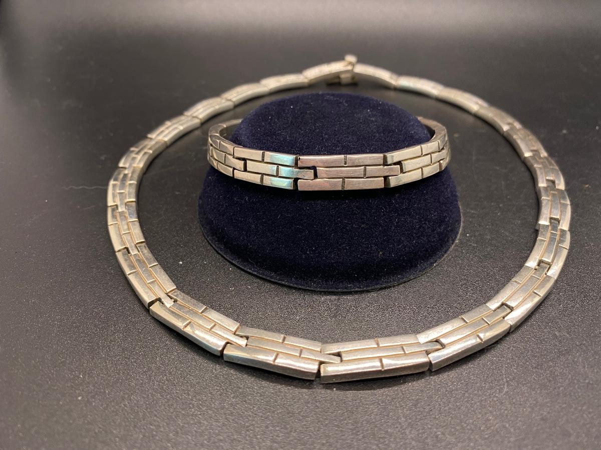 Sterling Silver 925 Subway Tile Link Chain Matching Bracelet Necklace Set Mexico
