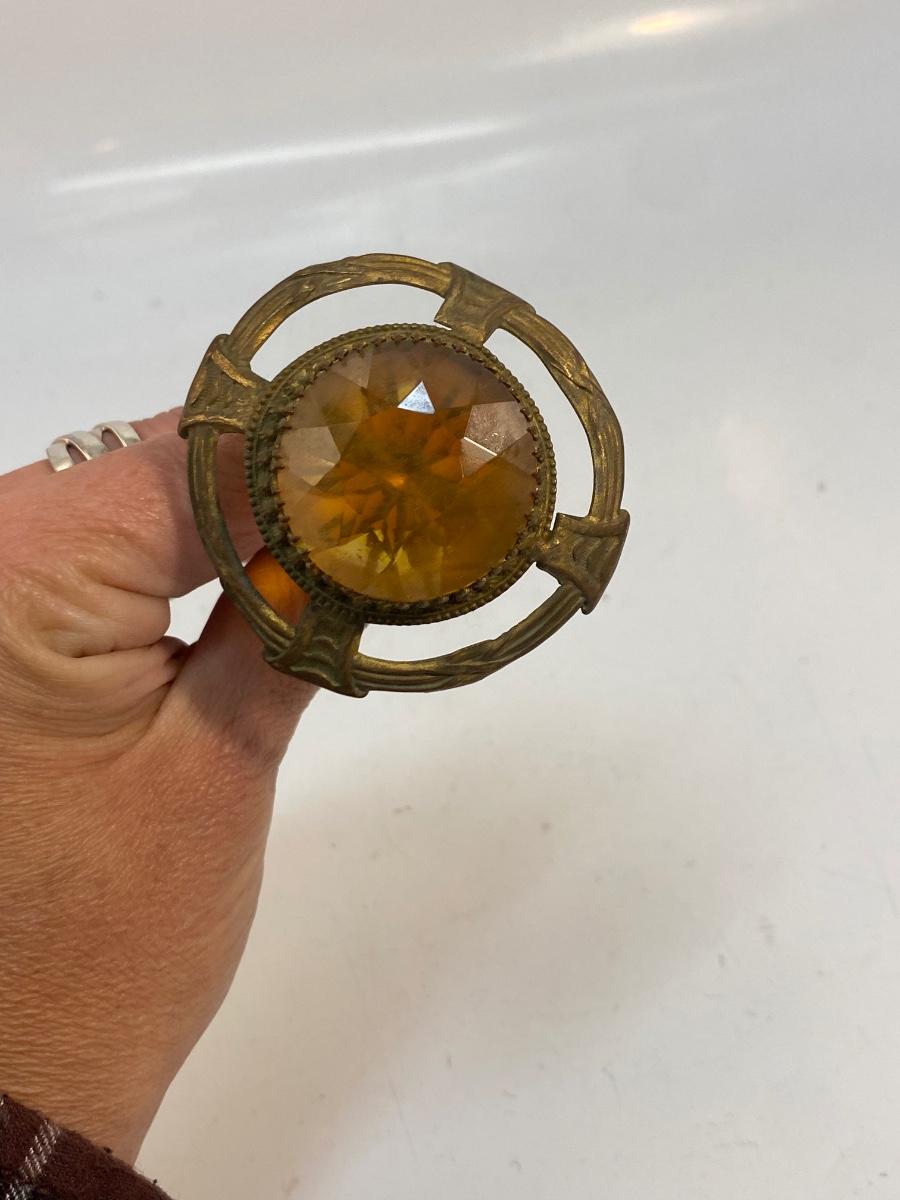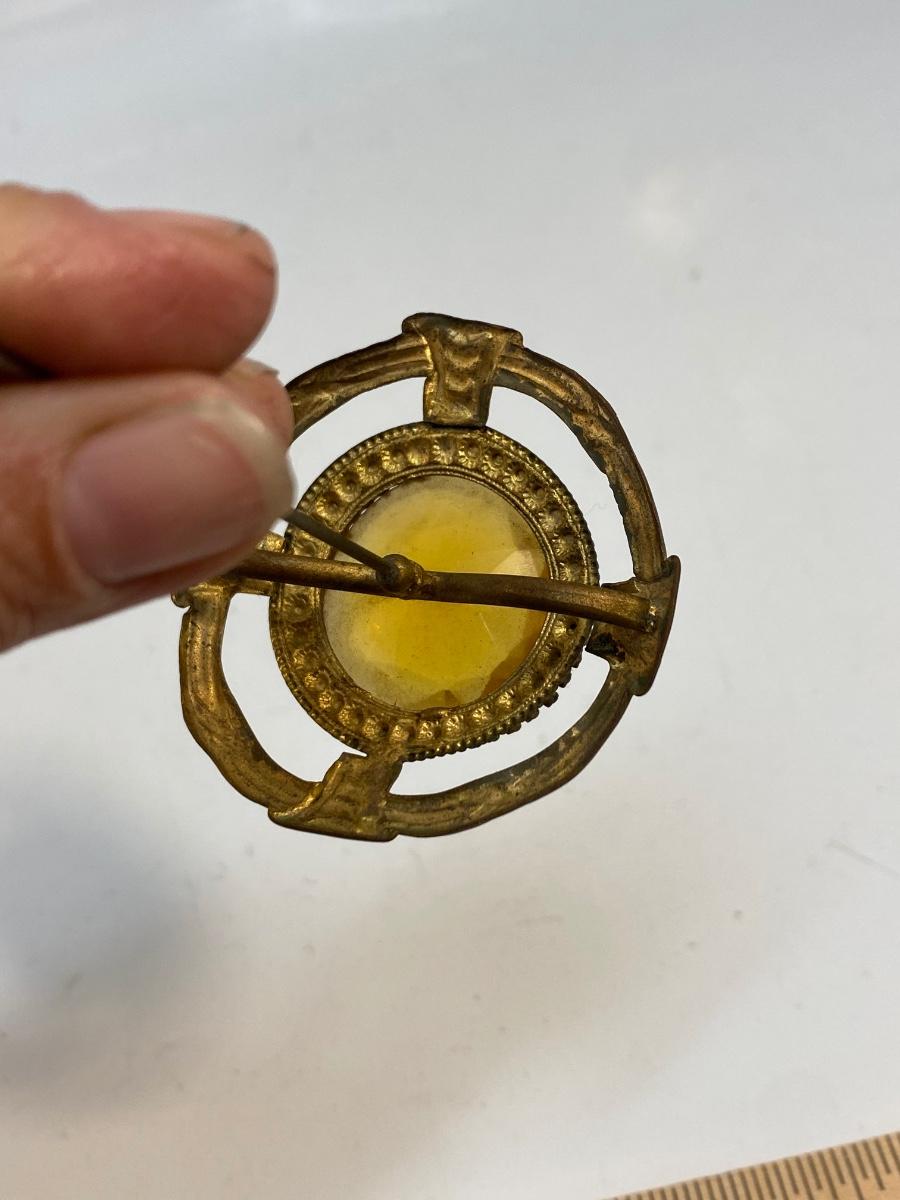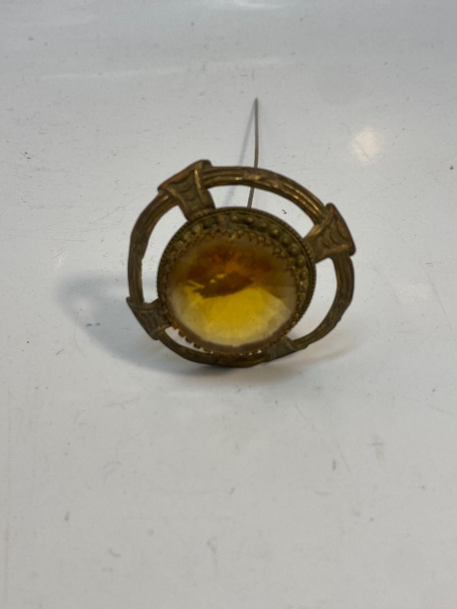Antique Victorian Large Yellow Stone Medallion Hat Stick Pin