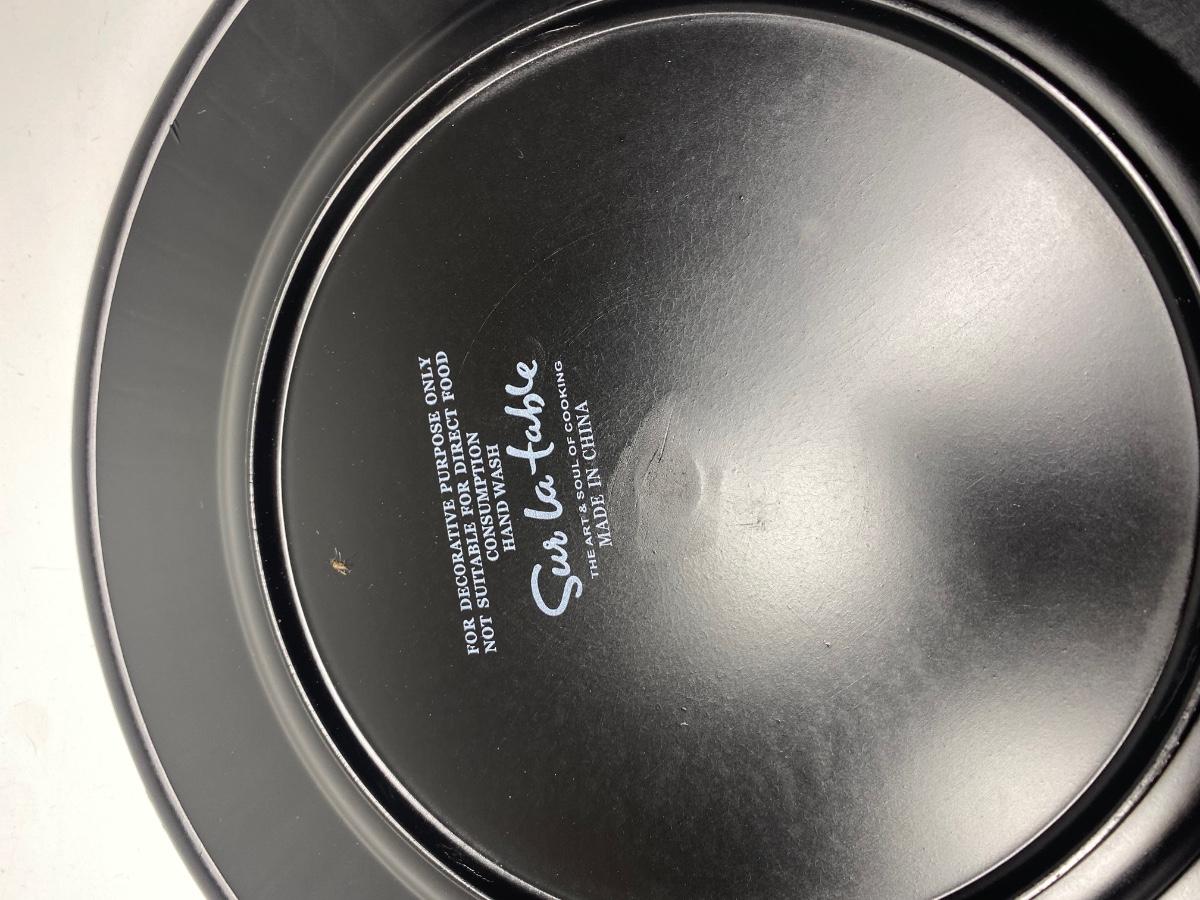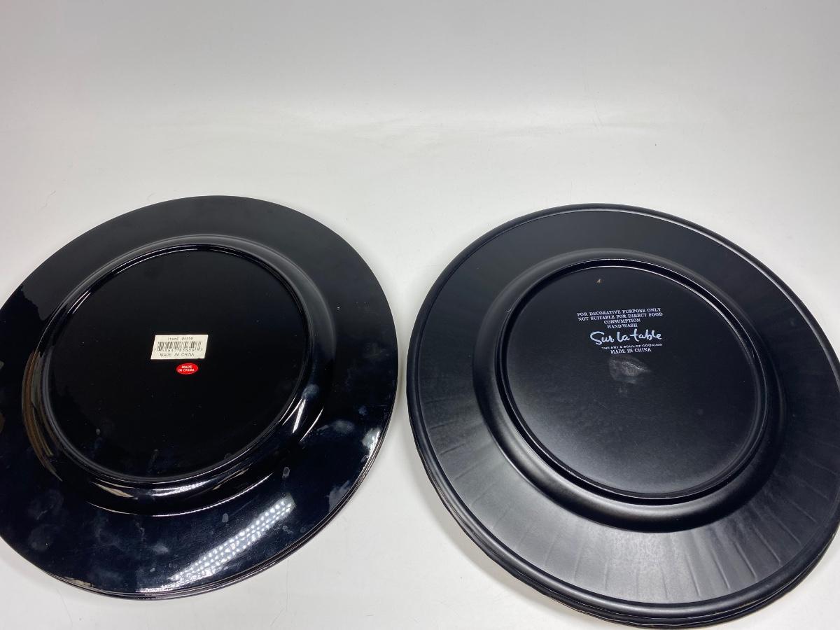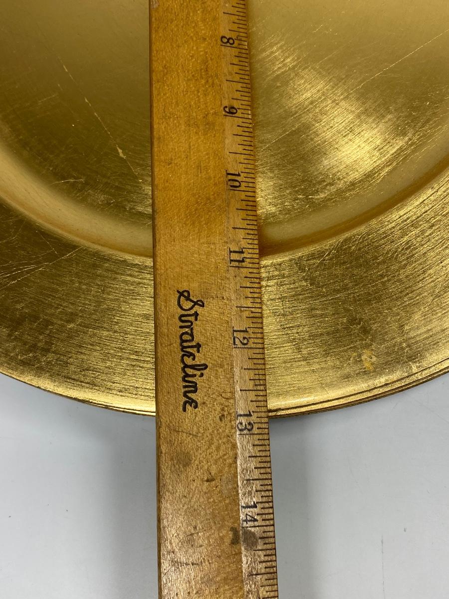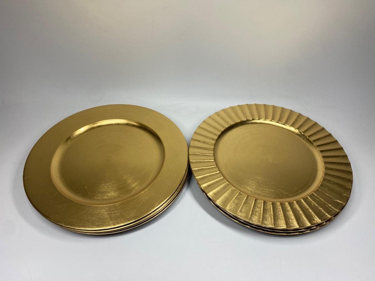 Set of 8 Metallic Gold Plastic Charger Plates. 4 smooth and 4 with ribbed edge. Good previously used condition.