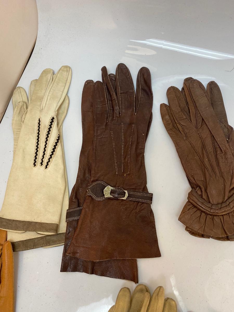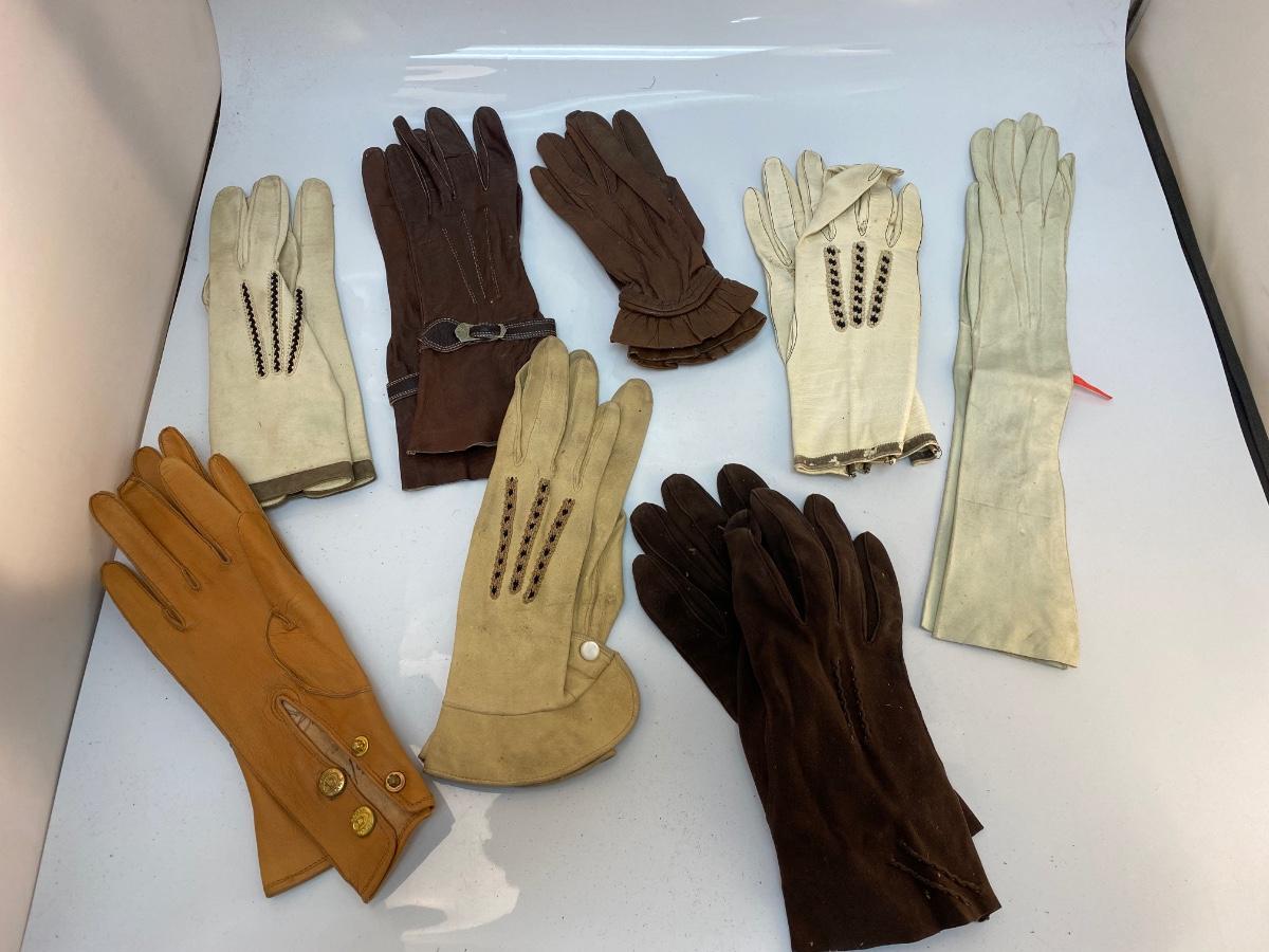Antique Victorian Vintage Ladies Leather Suede Gloves Lot of 8 Pairs