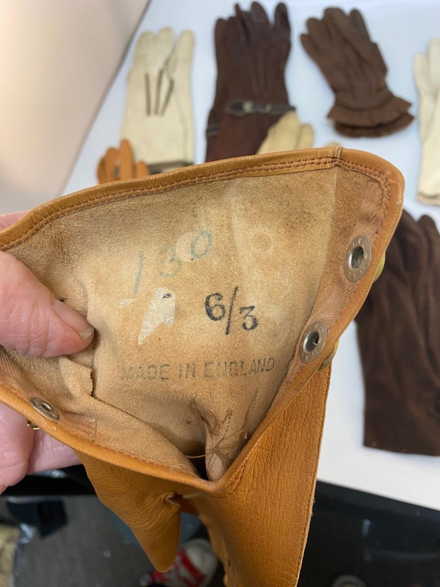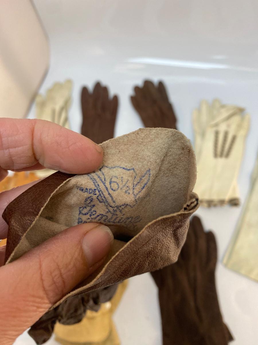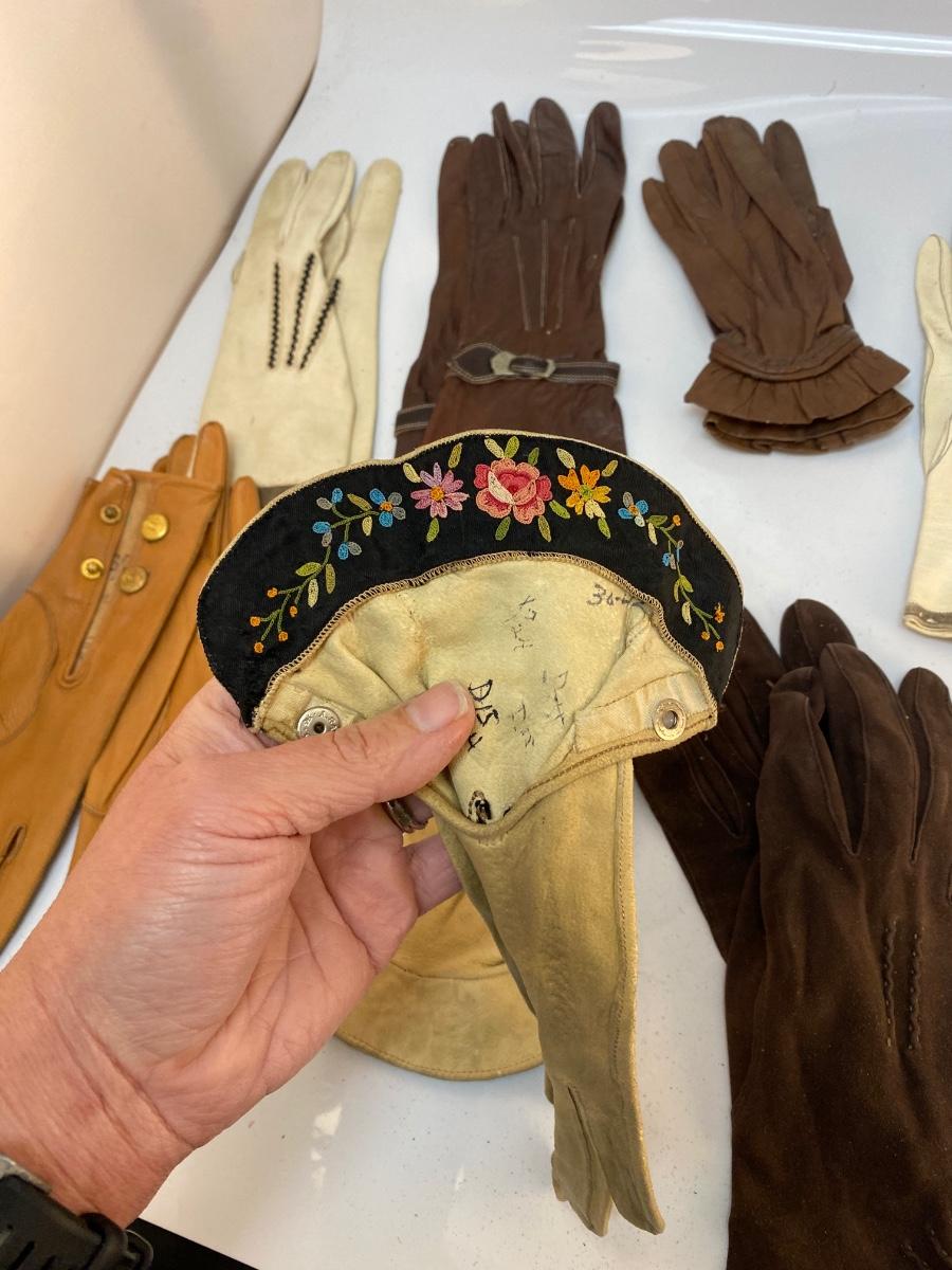 Antique Victorian Vintage Ladies Leather Suede Gloves Lot of 8 Pairs. Made for small petite hands. Some have markings in them (photos). One pair has beautiful floral embroidery design inside the cuff. There is discolor from age and some light wear but in good wearable condition for the most part.