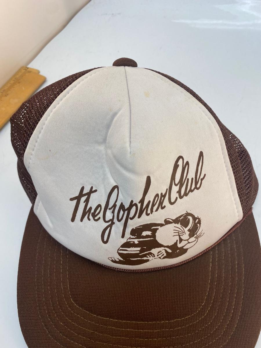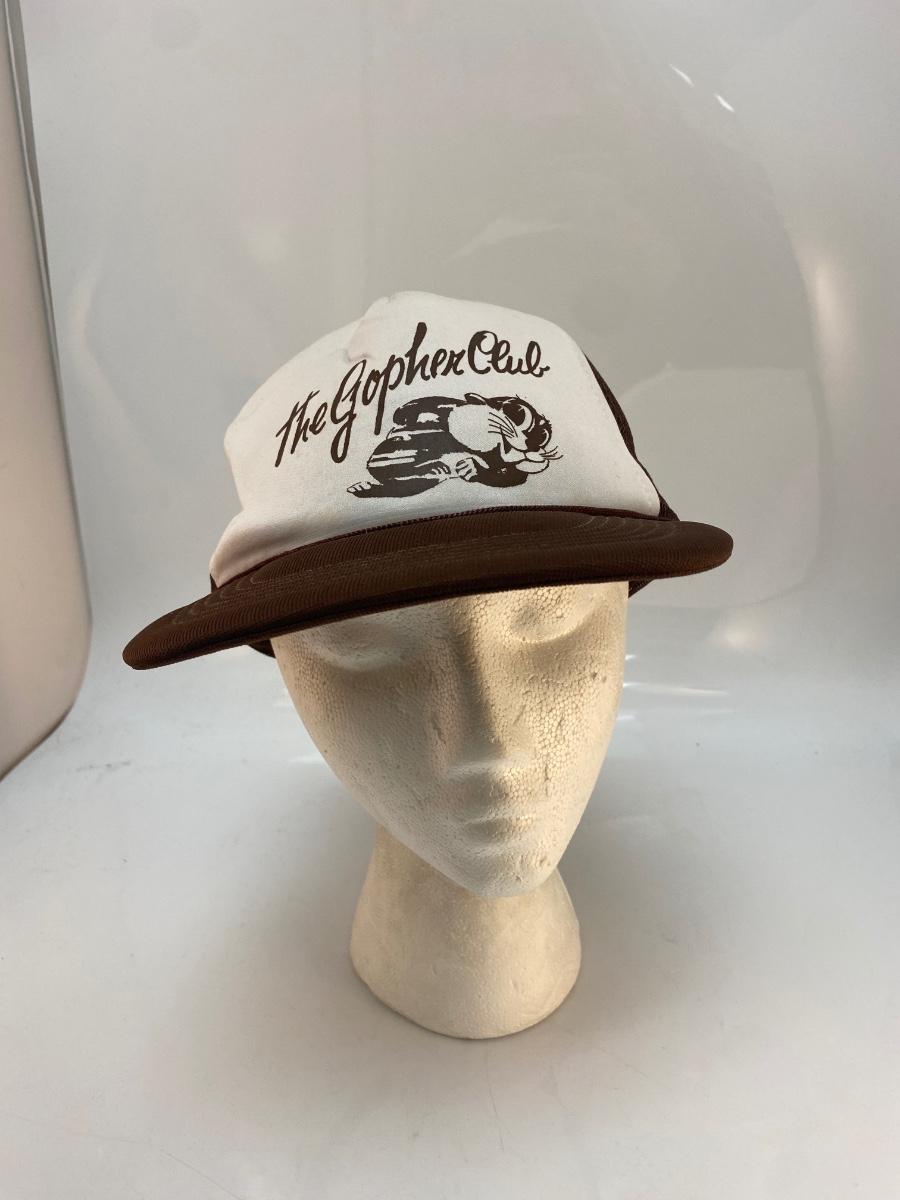 Vintage Retro Brown & White Trucker Snap Back Hat Cap The Gopher Club. In good condition, some very light discolor. Bill is in good condition, not cracked.