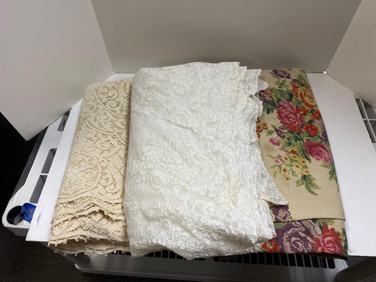 Lot of 3 Large Tablecloths Lace and Floral