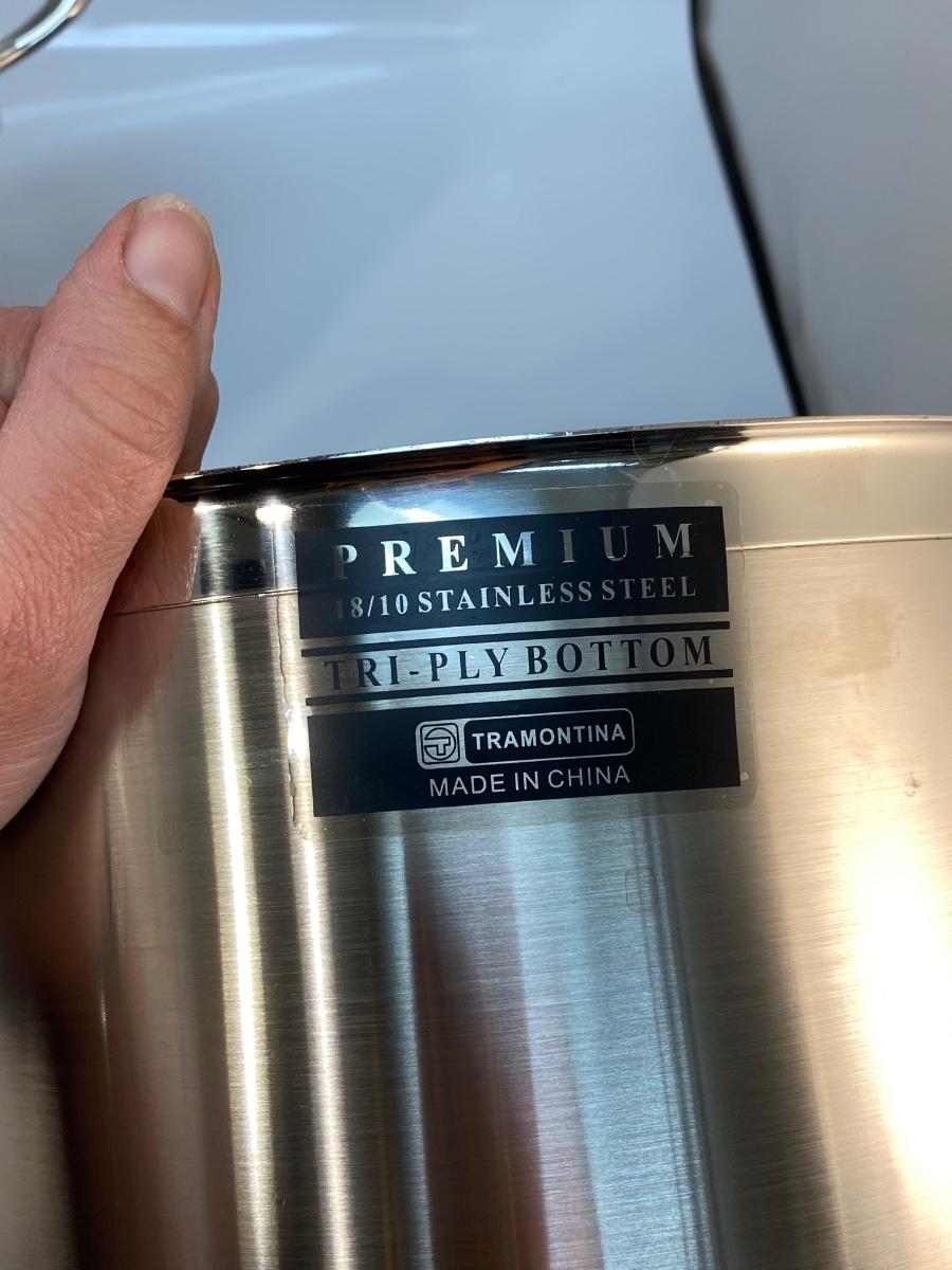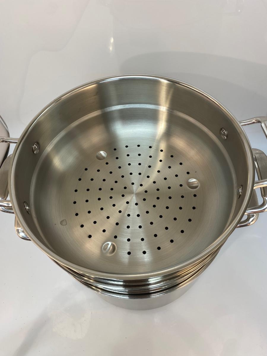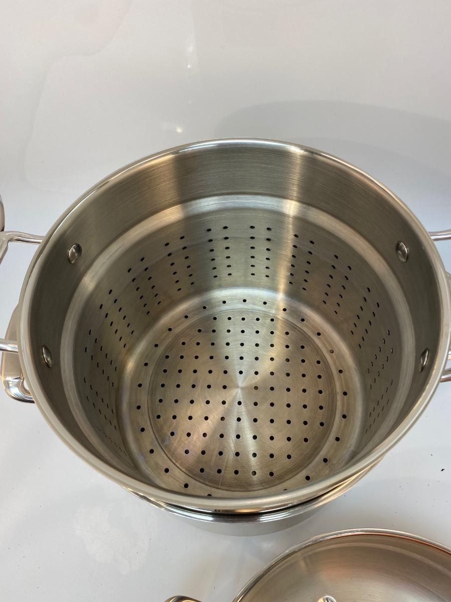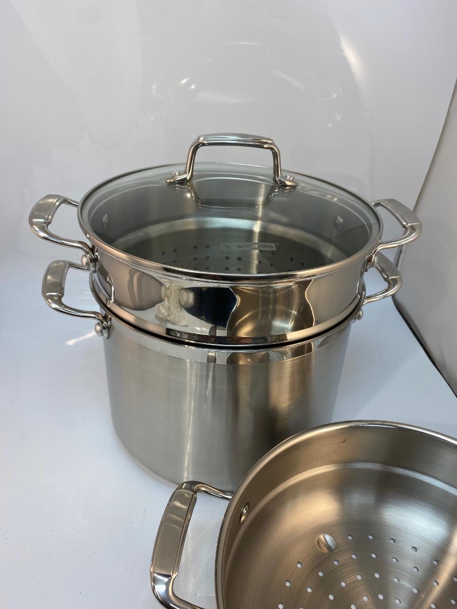 Tramontina Premium Stainless Steel Stock Pot with Steamer & Colander Inserts. In good used condition. Has original box included.