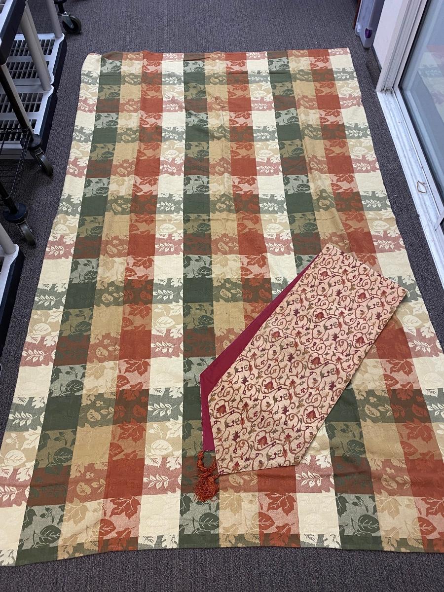Fall Autumn Thanksgiving Warm Tone Tablecloth and Table Runner. In good condition.