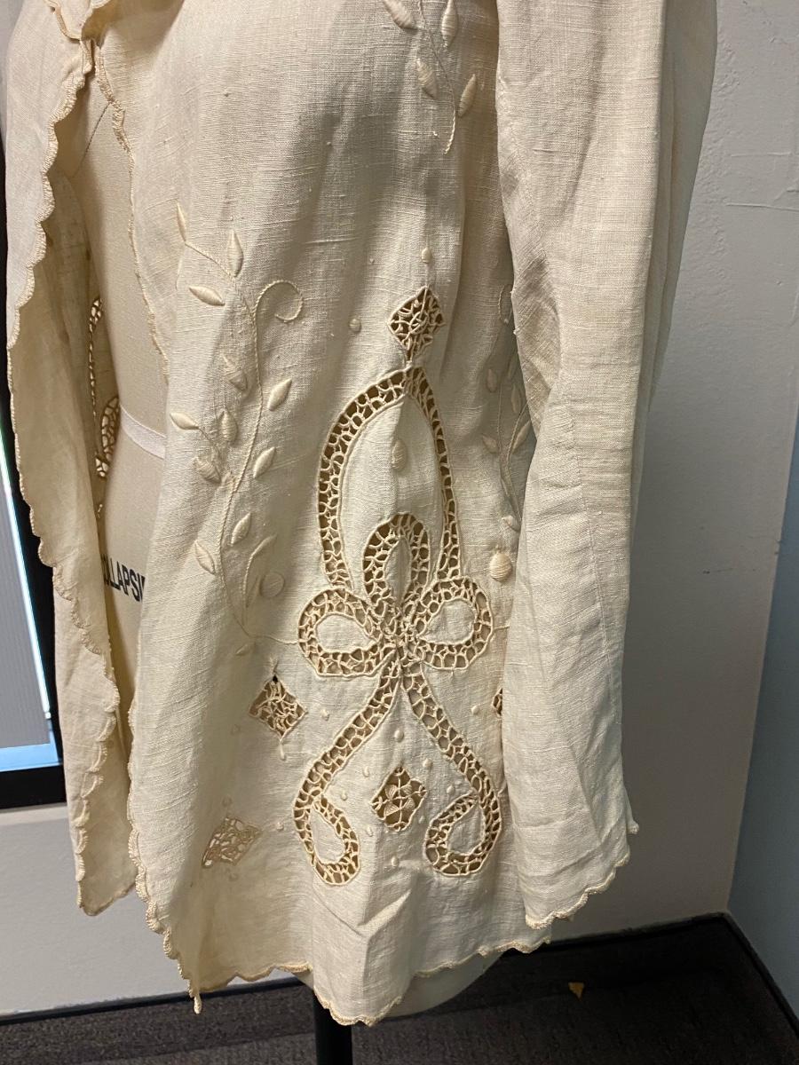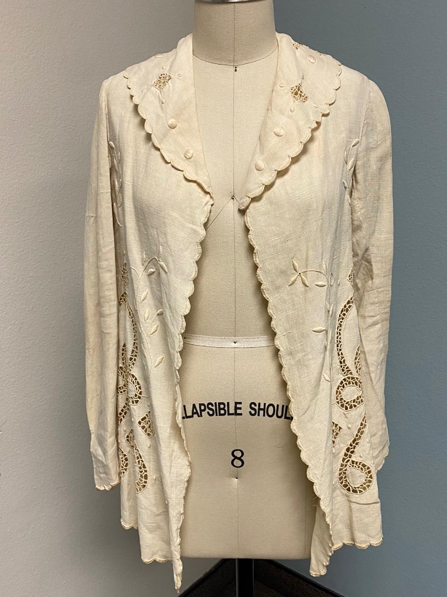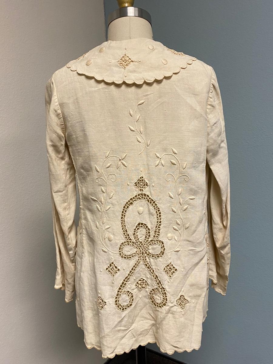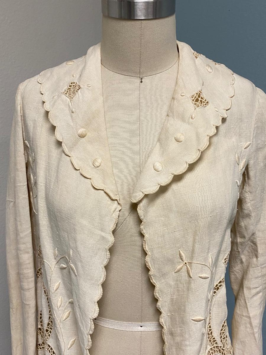 Vintage Antique Victorian Ecru Embroidered Lace Work Coat Blouse