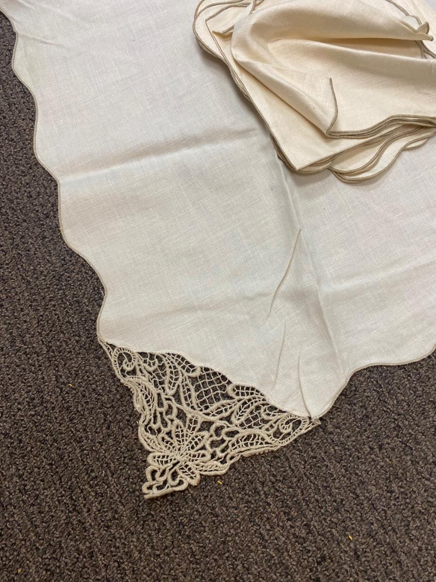Vintage Off White Lace Corner Tablecloth with Matching Napkins